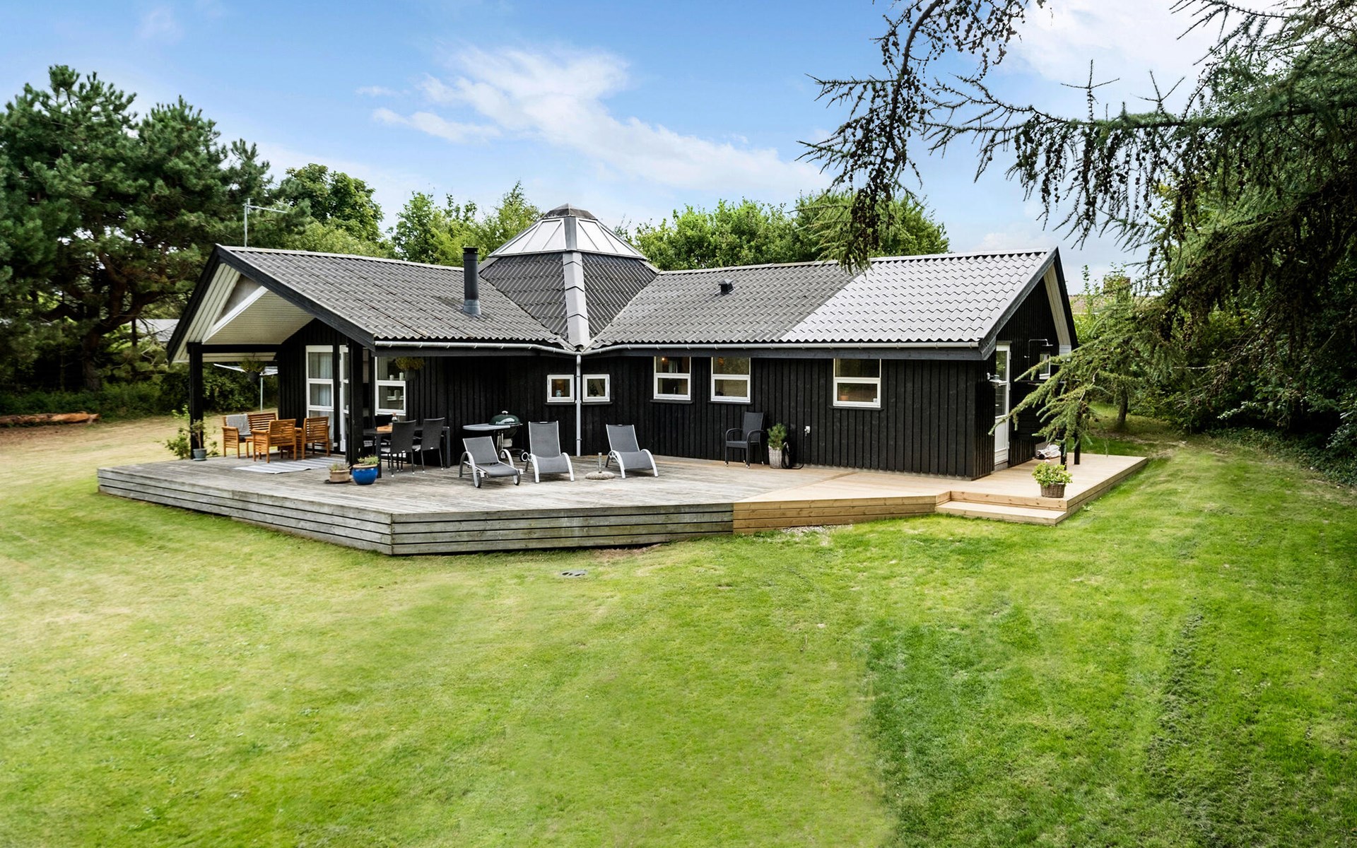 Stylish vacation home with wood-burning stove, large natural plot and walking distance to the water.