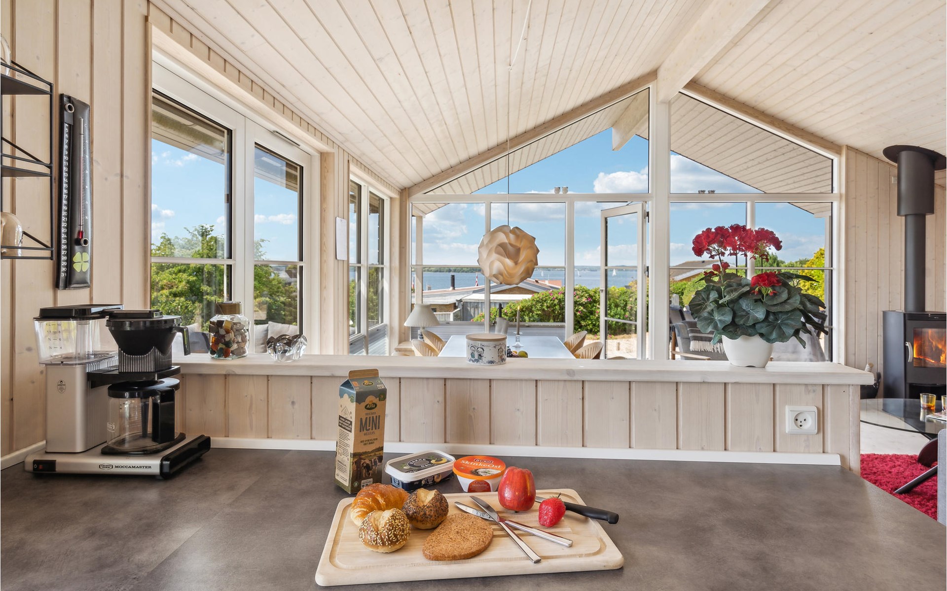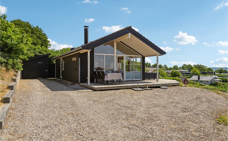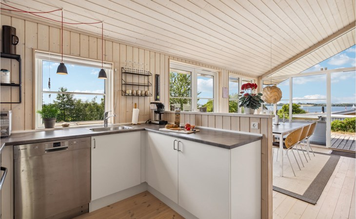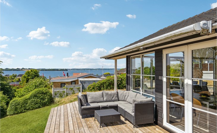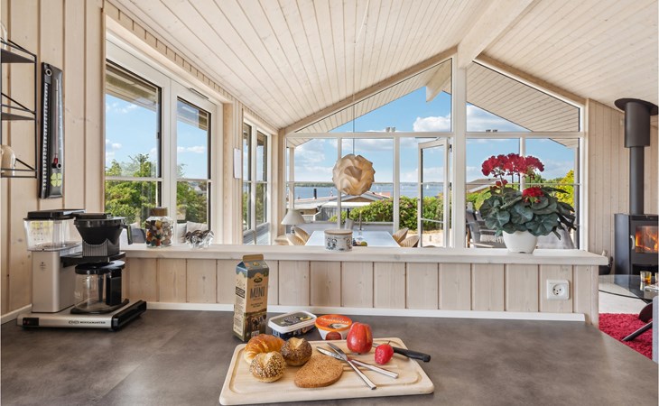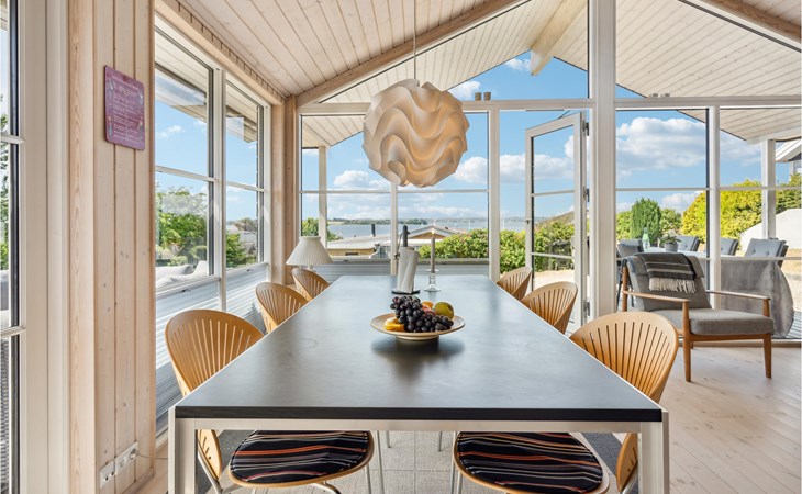 Welcome to this beautiful vacation home in a quiet area of Brunsnæs Strand. The location is secluded at the end of a cul-de-sac and promises you a relaxing vacation. Enter the welcoming house and feel right at home inside. It is tastefully furnished and offers you a magnificent view of the water through the panoramic windows in the living room, where you can watch the busy boat and ship traffic to and from Flensburg.