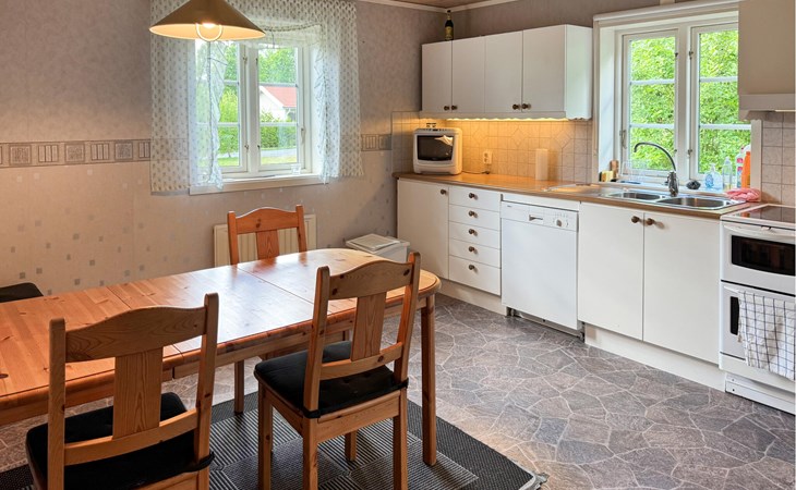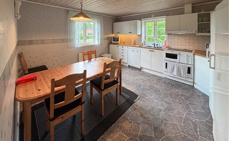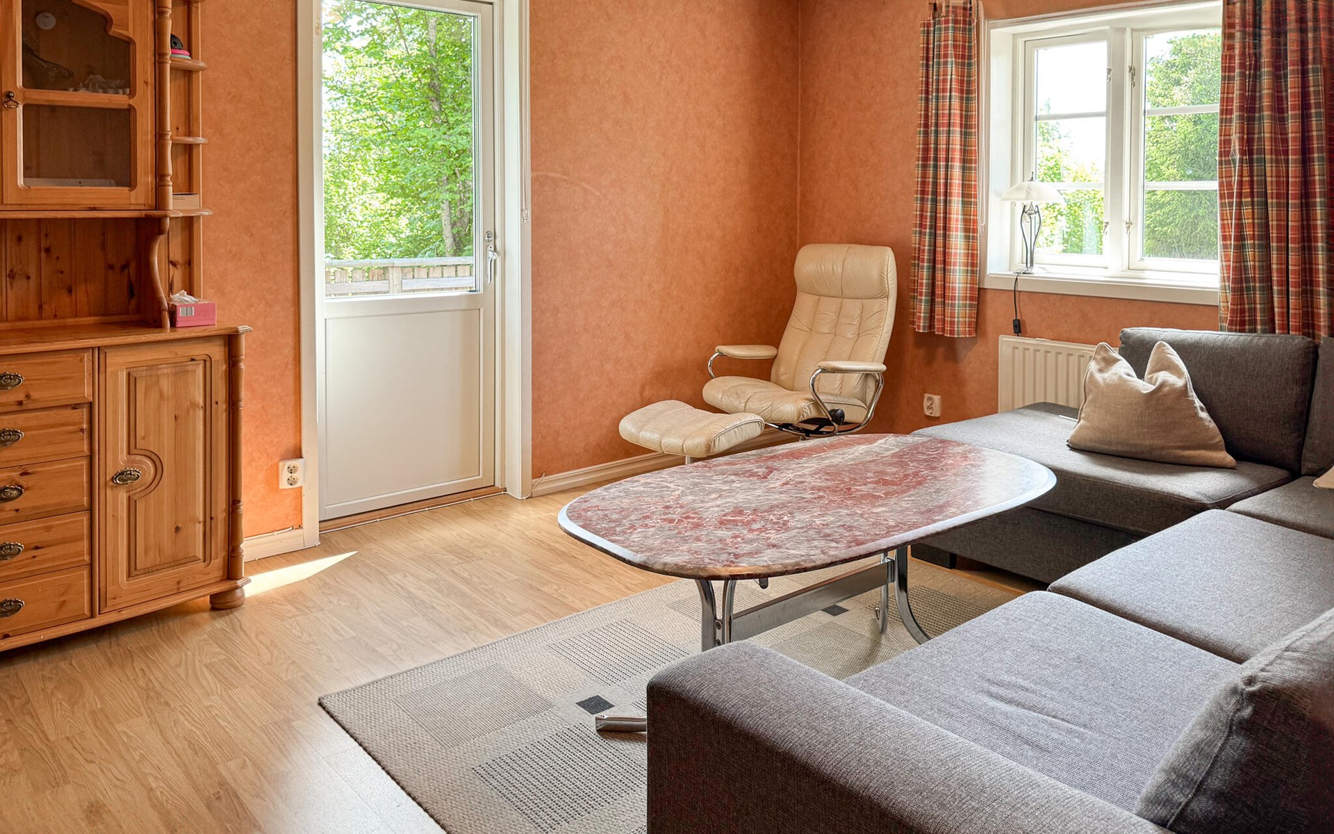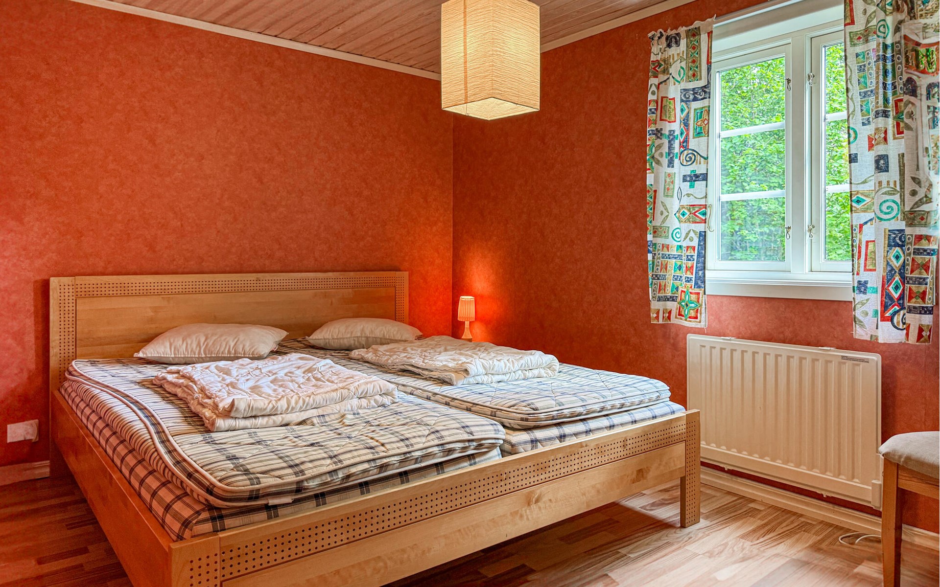 Right on the shores of the tranquil Spexhultasjön, this friendly holiday home invites you to spend relaxing days away from everyday life. Look forward to harmonious meals at the cosily lit dining table, spend time with your loved ones during cheerful games evenings and listen to the soft crackling of the Norwegian stove while reading in the inviting living room.