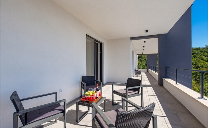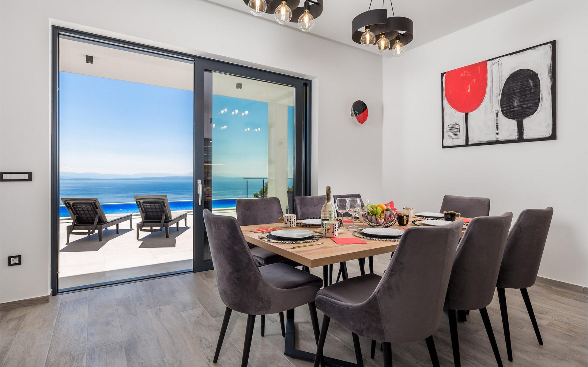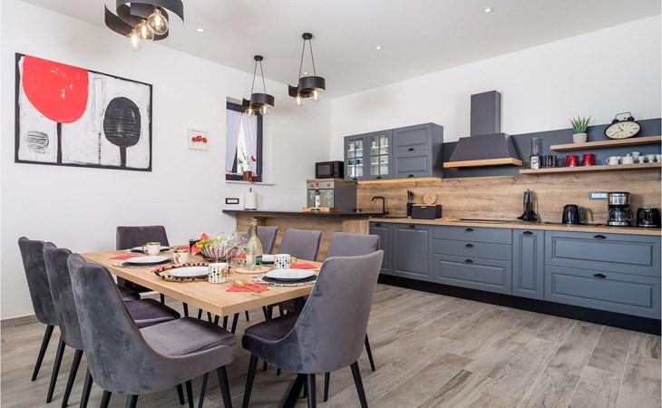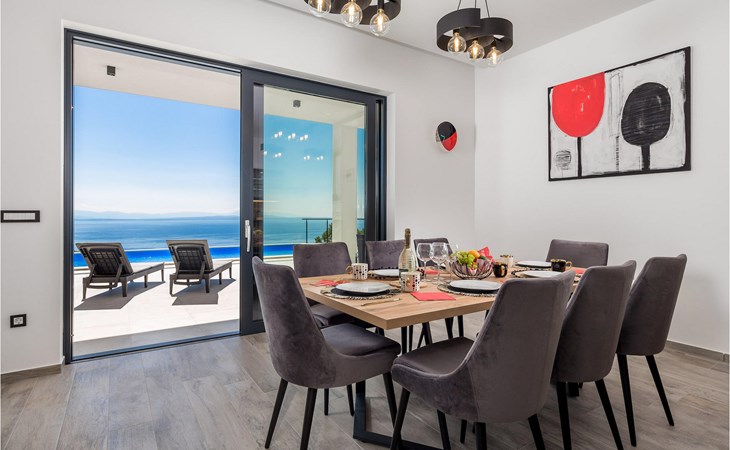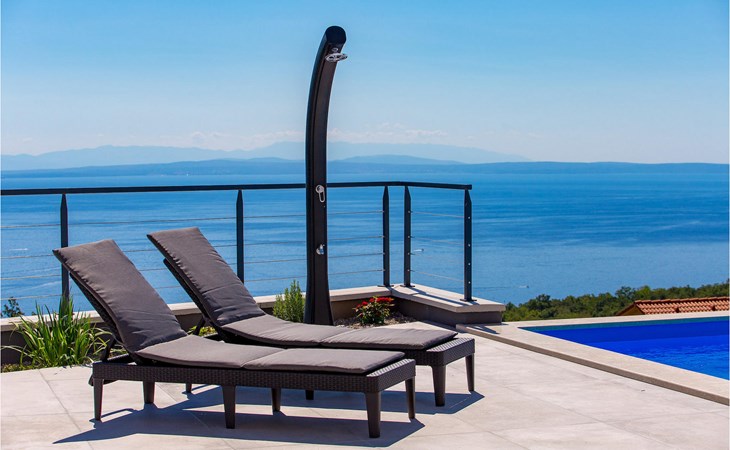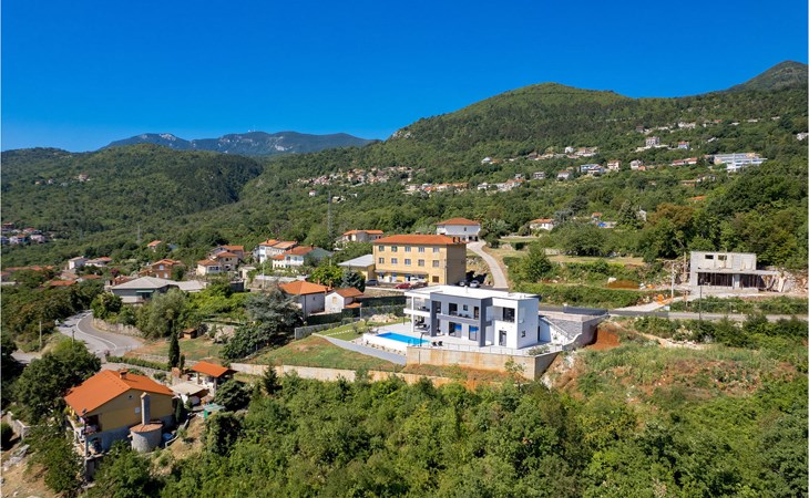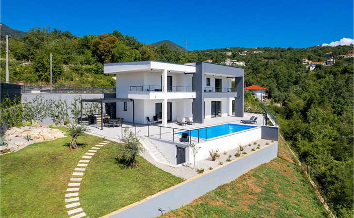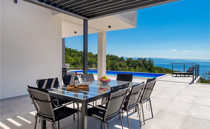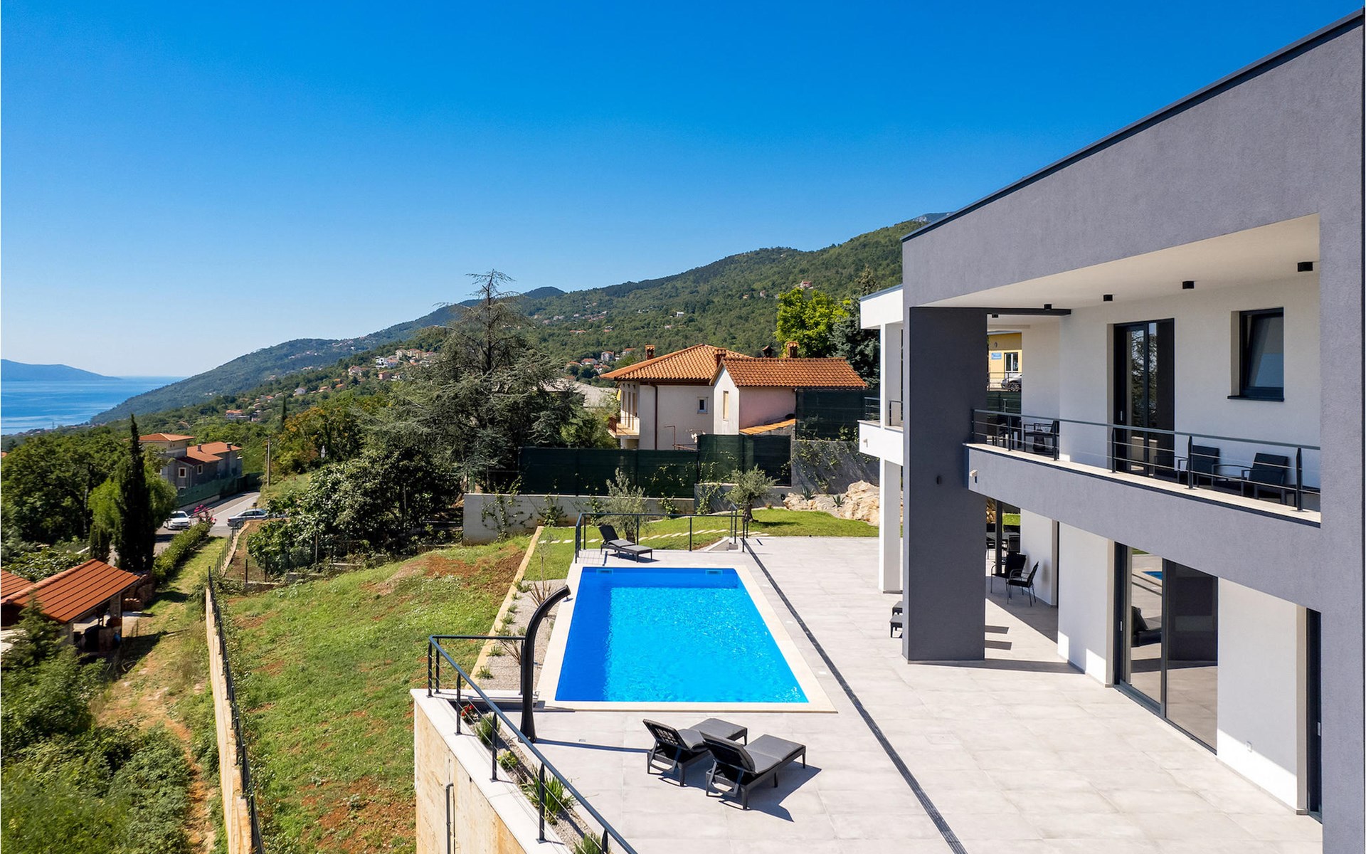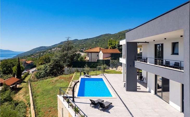 One of the best features of this villa is its large terrace with a beautiful pool. There you will also find an outdoor kitchen with stove, gas barbecue and covered dining area. Take a refreshing dip in the pool and then relax on one of the sun loungers.The villa is located in the village of Poljane in Kvarner Bay, a true pearl of the Adriatic. It is only 10 km away from the center of Opatija, one of Croatia's most charming tourist hotspots, known for its old Austro-Hungarian flair. Within a radius of 10 km you will find many beaches and nearby there is also a marina where you can rent a boat and visit the islands in the bay. Lungomare, a 12 km long coastal path that stretches from Lovran to Volosko, is very popular with tourists visiting the area. A romantic and relaxing 100-year-old walk along the shore, far away from the city traffic, offers you the opportunity to relax from stress and everyday worries. Another must-see is Volosko, a former fishing town. Today, Volosko attracts tourists with its many restaurants and a wonderful view of the sea. Rijeka, the third largest city in Croatia and its largest port, is only 20 km away.
