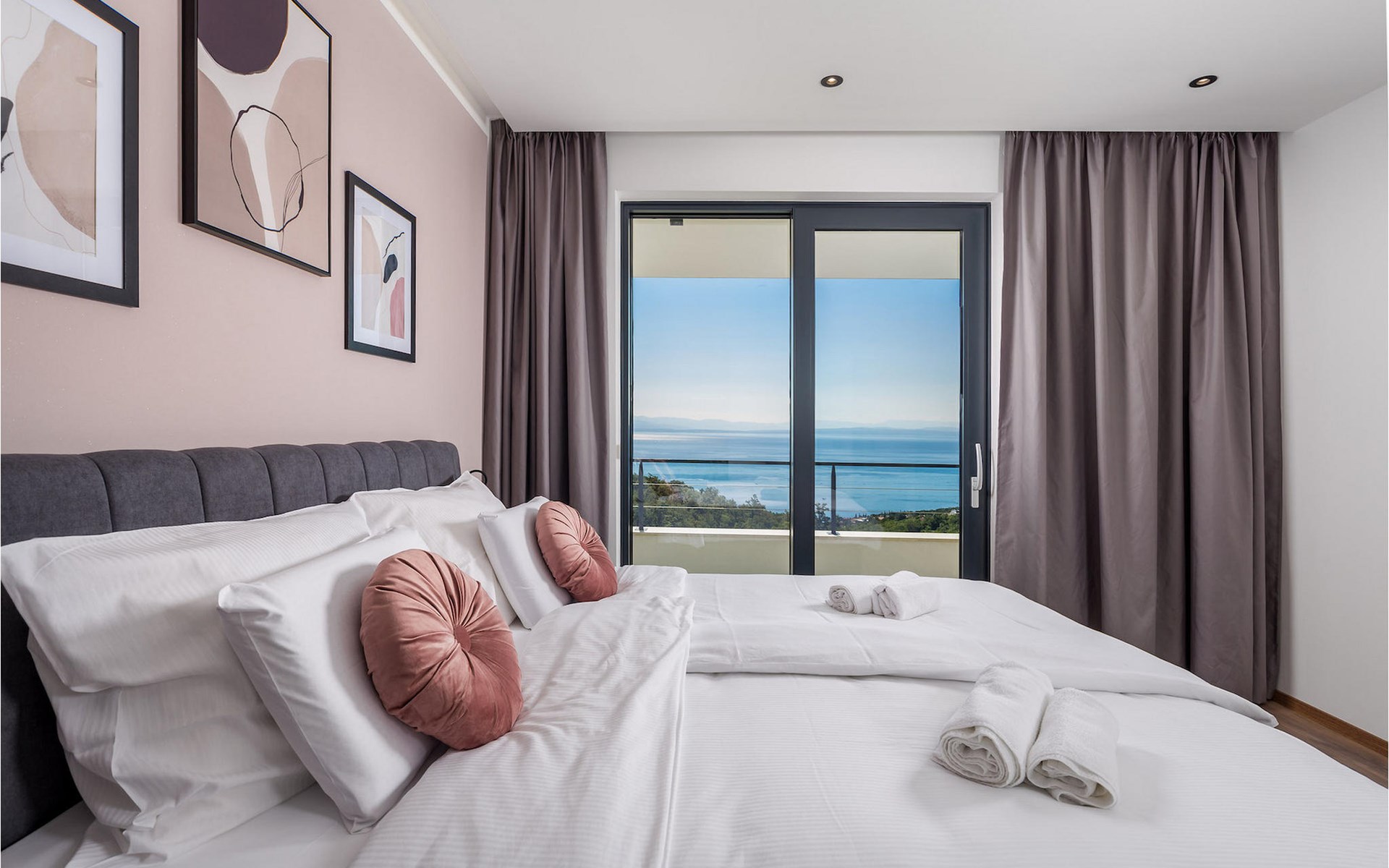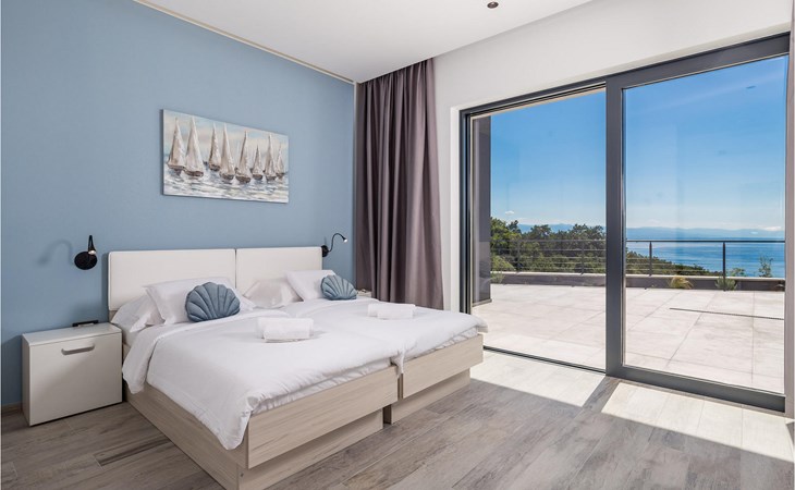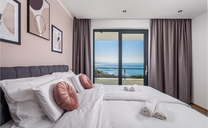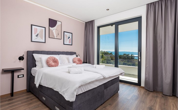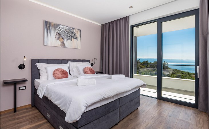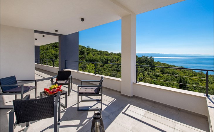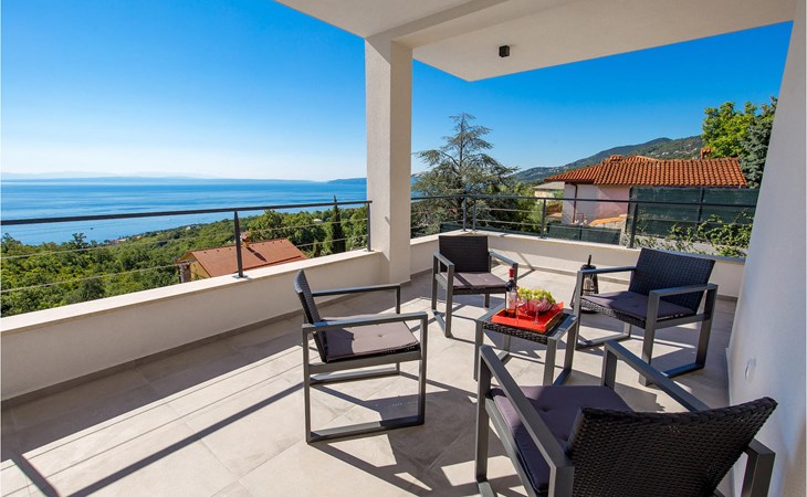 The beautiful Villa Ziganto with private pool and stunning sea views is located near Opatija. It can accommodate up to 8 people in 4 bedrooms.