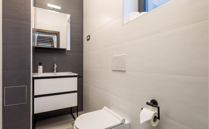 On the second floor you will find 3 double bedrooms, each with its own bathroom with shower. Those who want to relax in the indoor jacuzzi or sit back in one of the chairs on the upper terrace and enjoy the breathtaking views over the bay will absolutely love this floor.