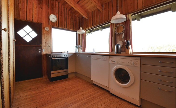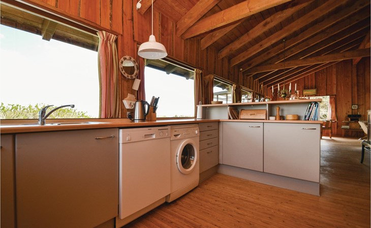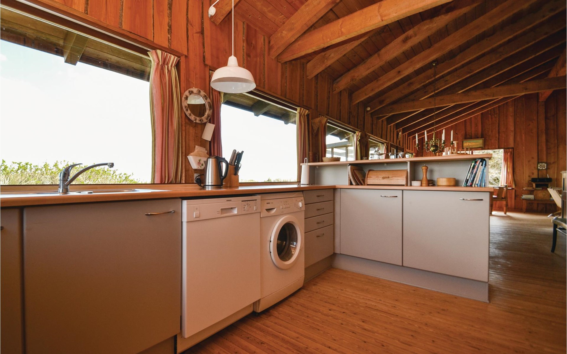Welcome to Sønderho's southernmost holiday home. This exceptional house offers you a fantastic panoramic view of the Wadden Sea and is located in the middle of unspoilt nature, ideal for those seeking peace and privacy. The rustic and cosy interior with exposed wooden beams, stone walls and a wood-burning stove in the living room creates a welcoming atmosphere. The functional and well-equipped kitchen area has all the amenities you need during your holiday to make your stay easier.