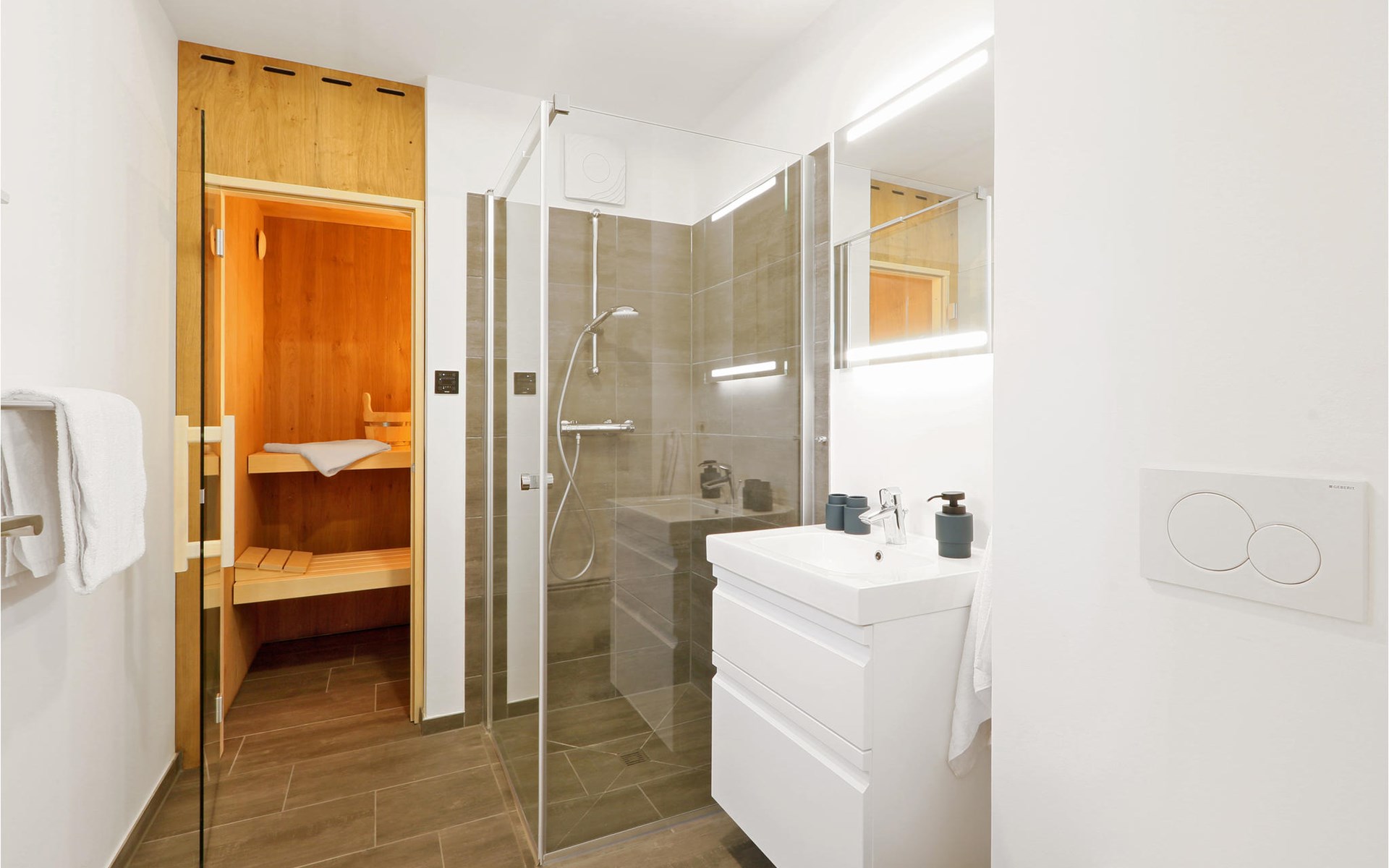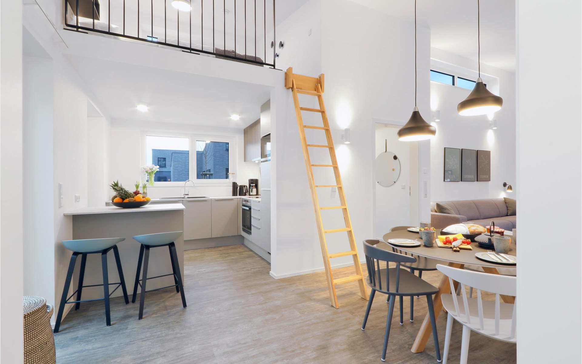 Welcome to your holiday home, which offers you as a family with children or as a small group of friends a cosy, homely ambience with Scandinavian design furnishings. Two terraces for sitting and eating in the sun, the bio-fireplace and your own sauna leave nothing to be desired. The open-plan kitchen invites you to cook and linger. There is an open-plan bedroom on the gallery.