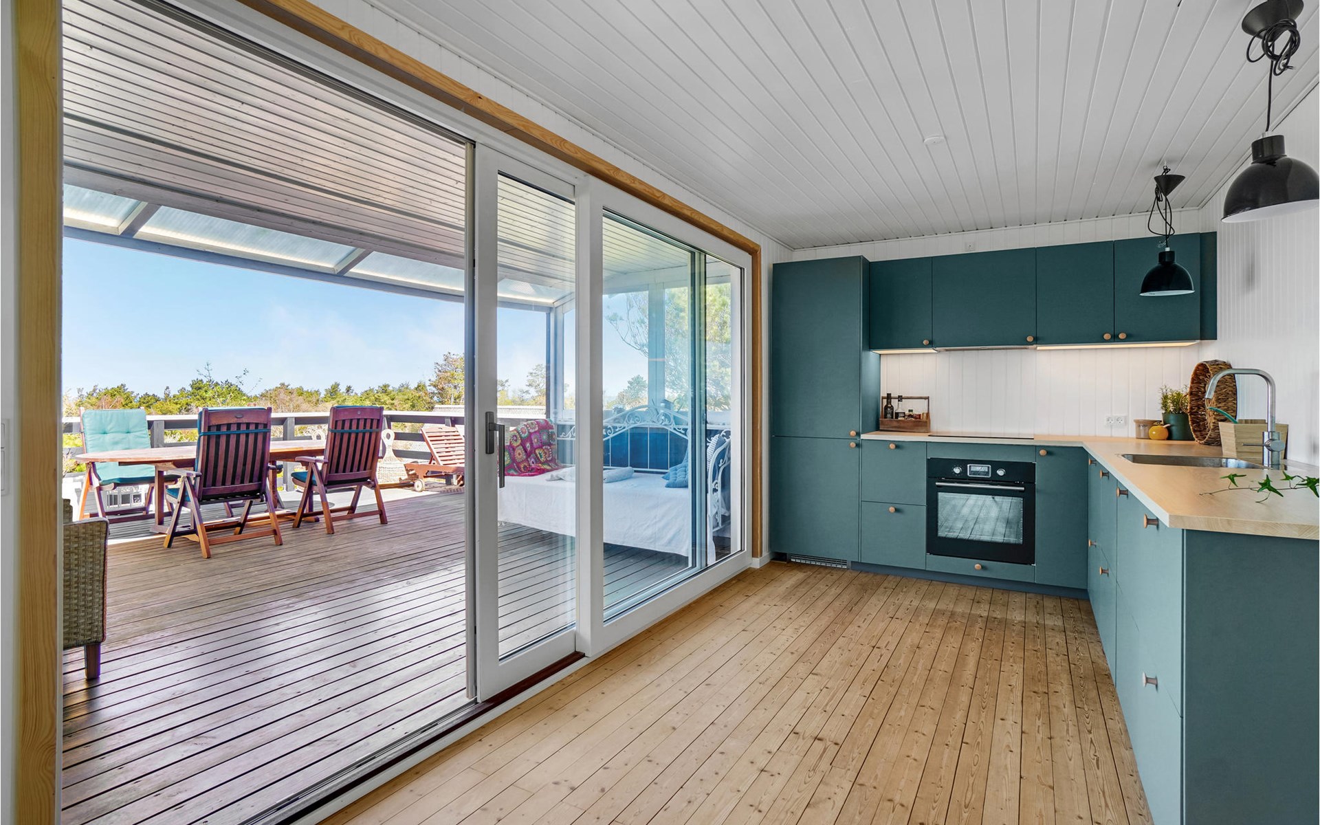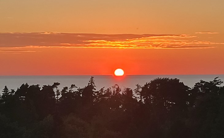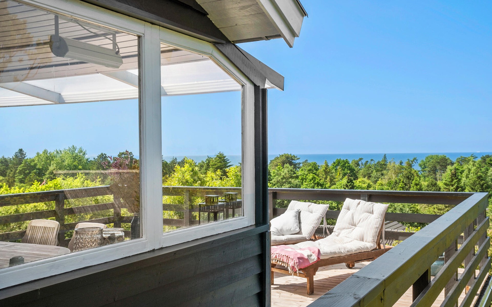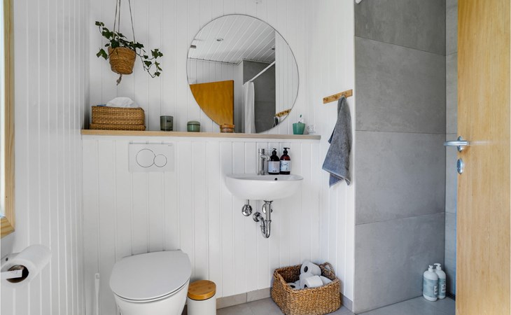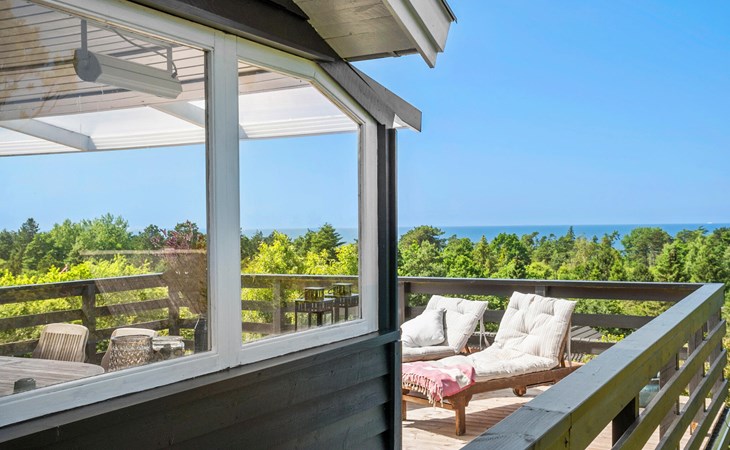 Look forward to a constant panoramic view over the bay from this inviting house. It welcomes you with comprehensive, classic furnishings in beautiful color combinations and offers you a pleasant living experience. You can look out over the treetops to the water, a scenery to fall in love with. The best way to enjoy this view is sitting on the raised terrace with a glass of your favorite drink in your hand. You can also enjoy wellness sessions in the outdoor sauna on the terrace while enjoying the window with a view. Afterwards, the outdoor shower in the outbuilding offers you the refreshment you need. Round off the evenings with a barbecue and make plans for your next activities.
