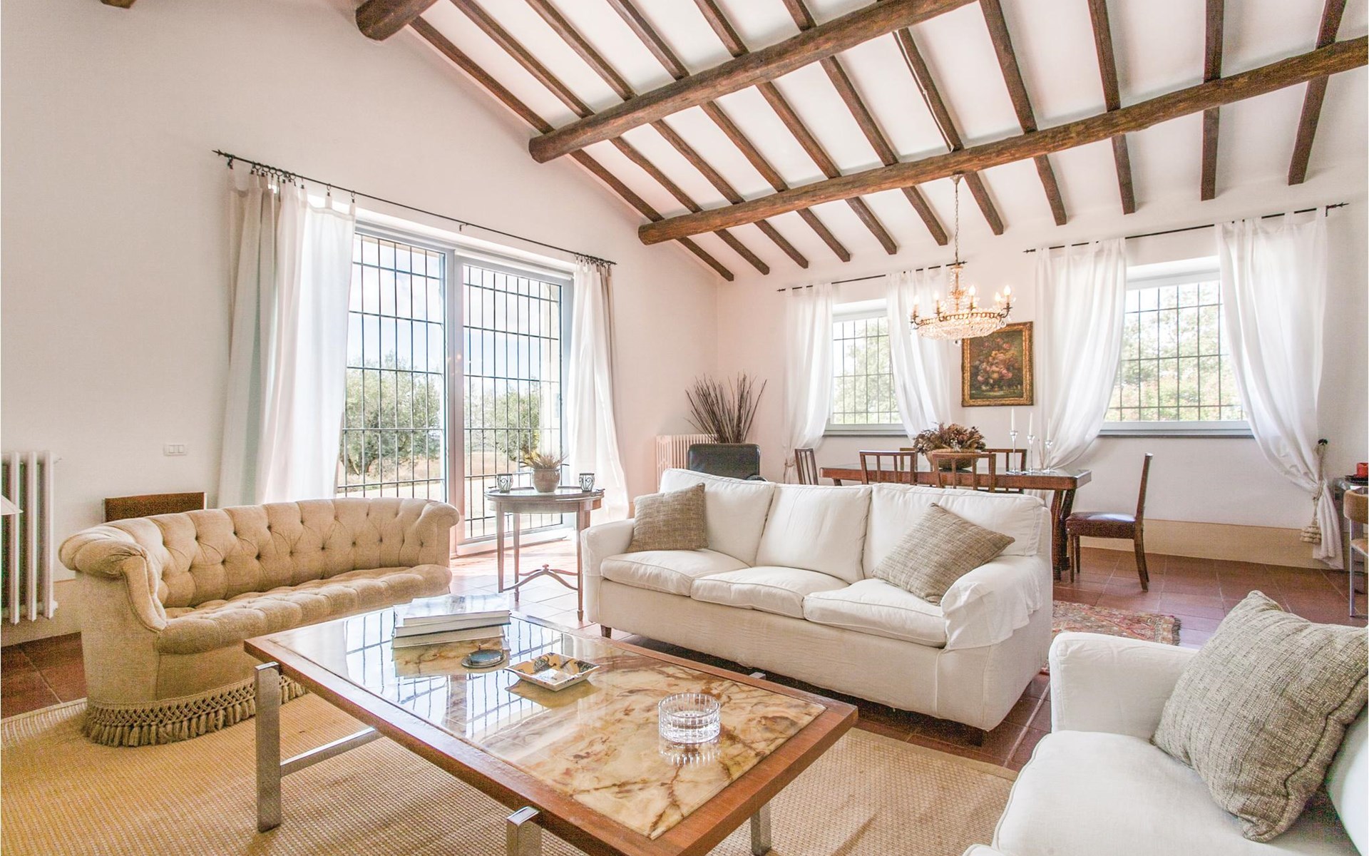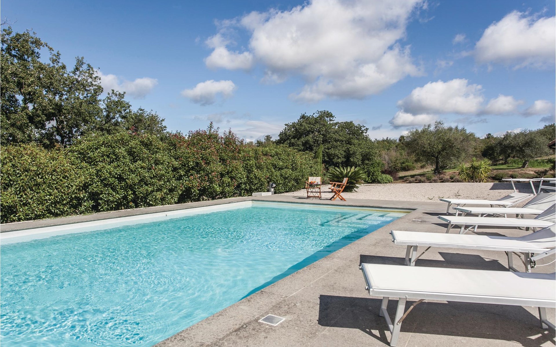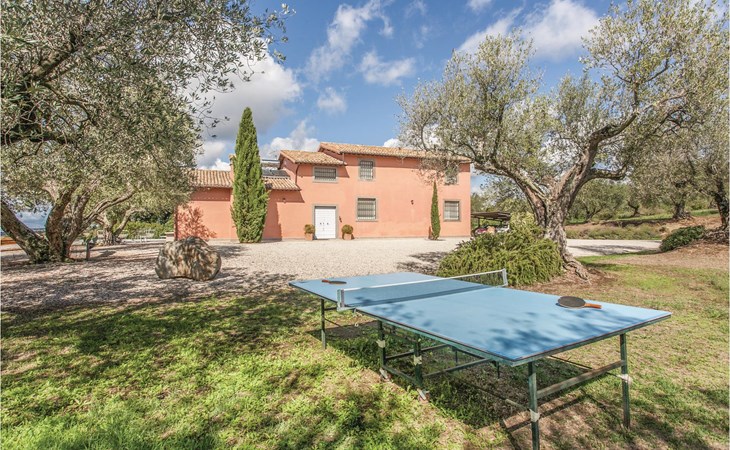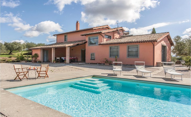 Beautiful vacation home, formerly an oil mill, on a 250 hectare estate known for the production of organic olive oil, located 8 km from Lake Bolsena. Here you will have the opportunity to visit the private oil mill and taste the extra virgin olive oils produced on the farm. The interior of the house and the furnishings are welcoming and very well maintained and in the spacious outdoor area guests can enjoy a beautiful panoramic swimming pool with equipped sun terrace. Wonderful, wide view of the opposite valley covered with olive trees. Absolute tranquility. Distances: Lake Bolsena with its beaches and medieval hamlets about 8 km, the small town of Montefiascone (stores of all kinds) about 11 km, the ancient city of Viterbo with thermal facilities (Terme dei Papi) 17 km, the picturesque Civita di Bagnoregio ( known as ' dying city') 20 km, the Etruscan Tarquinia and the beautiful, vast free and equipped sandy beaches of the Tyrrhenian Sea 52 km. The vacation house is ideal to spend a vacation in total freedom, in the respect of the nature and in the sign of modern comfort. Arrival exclusively 16 - 20 pm.