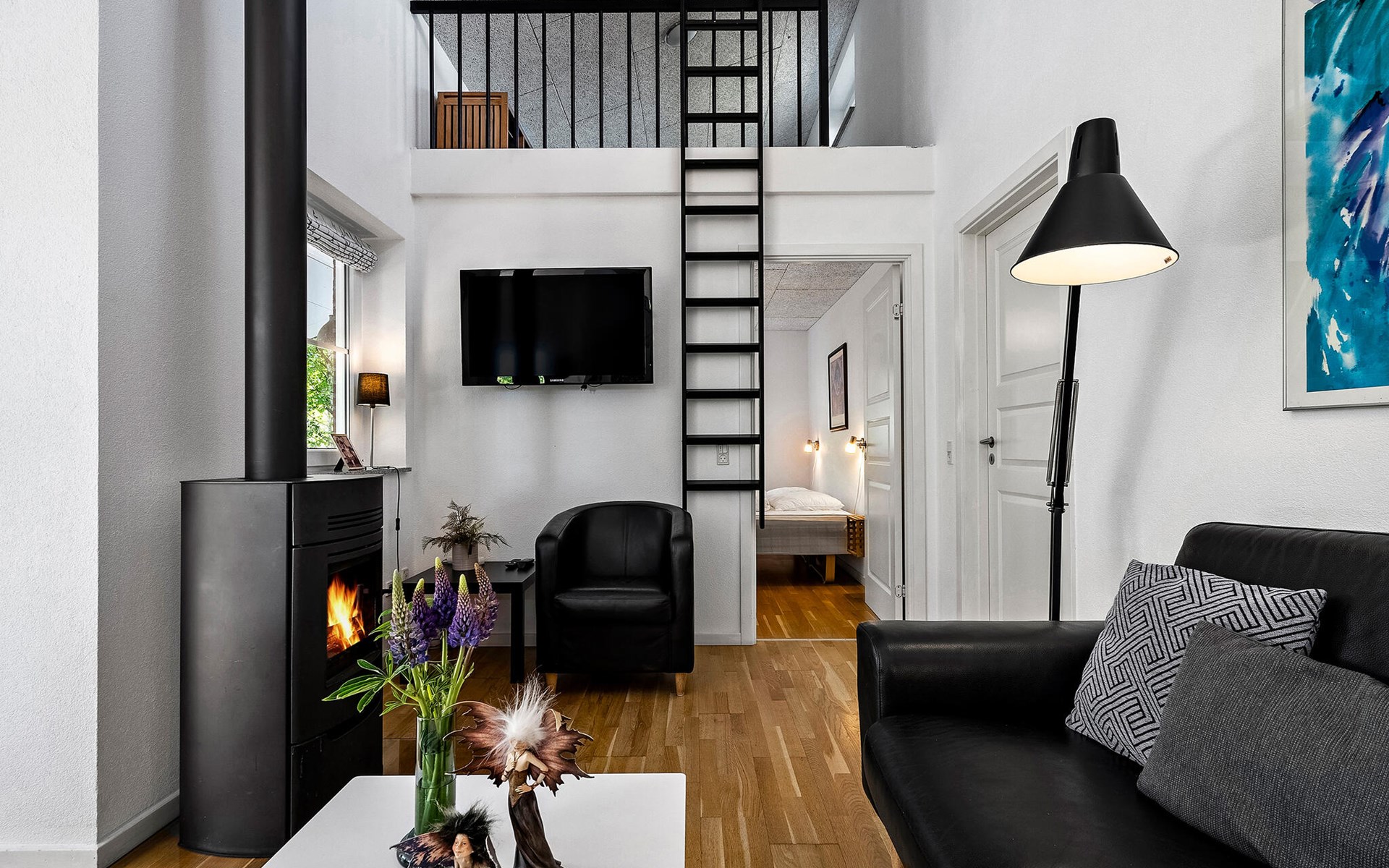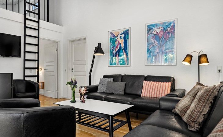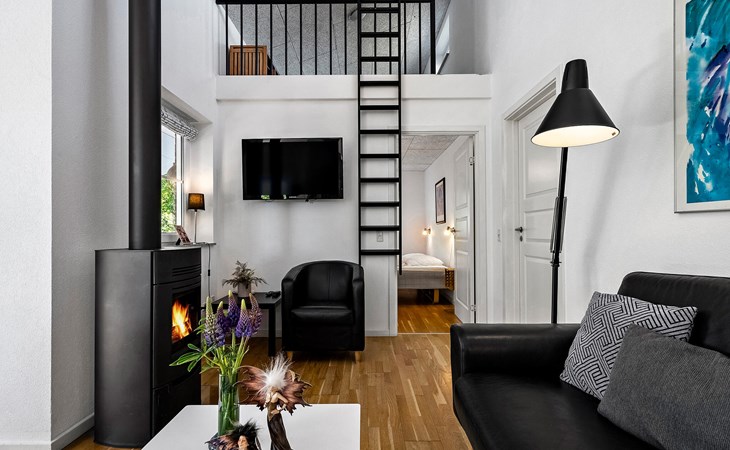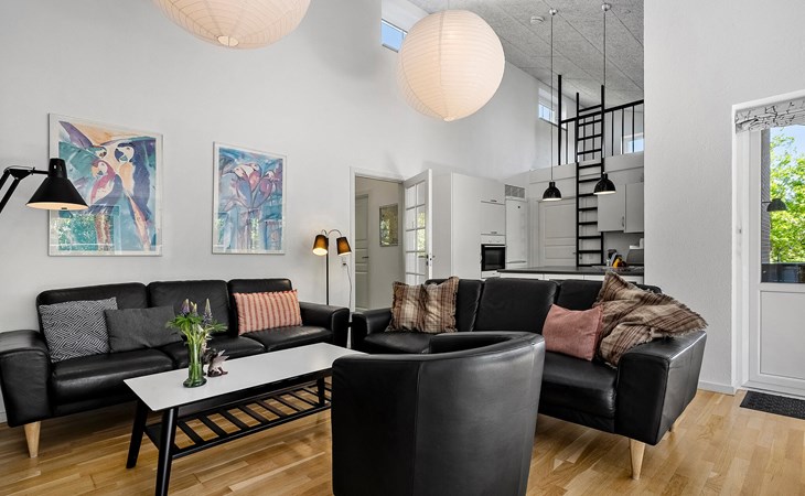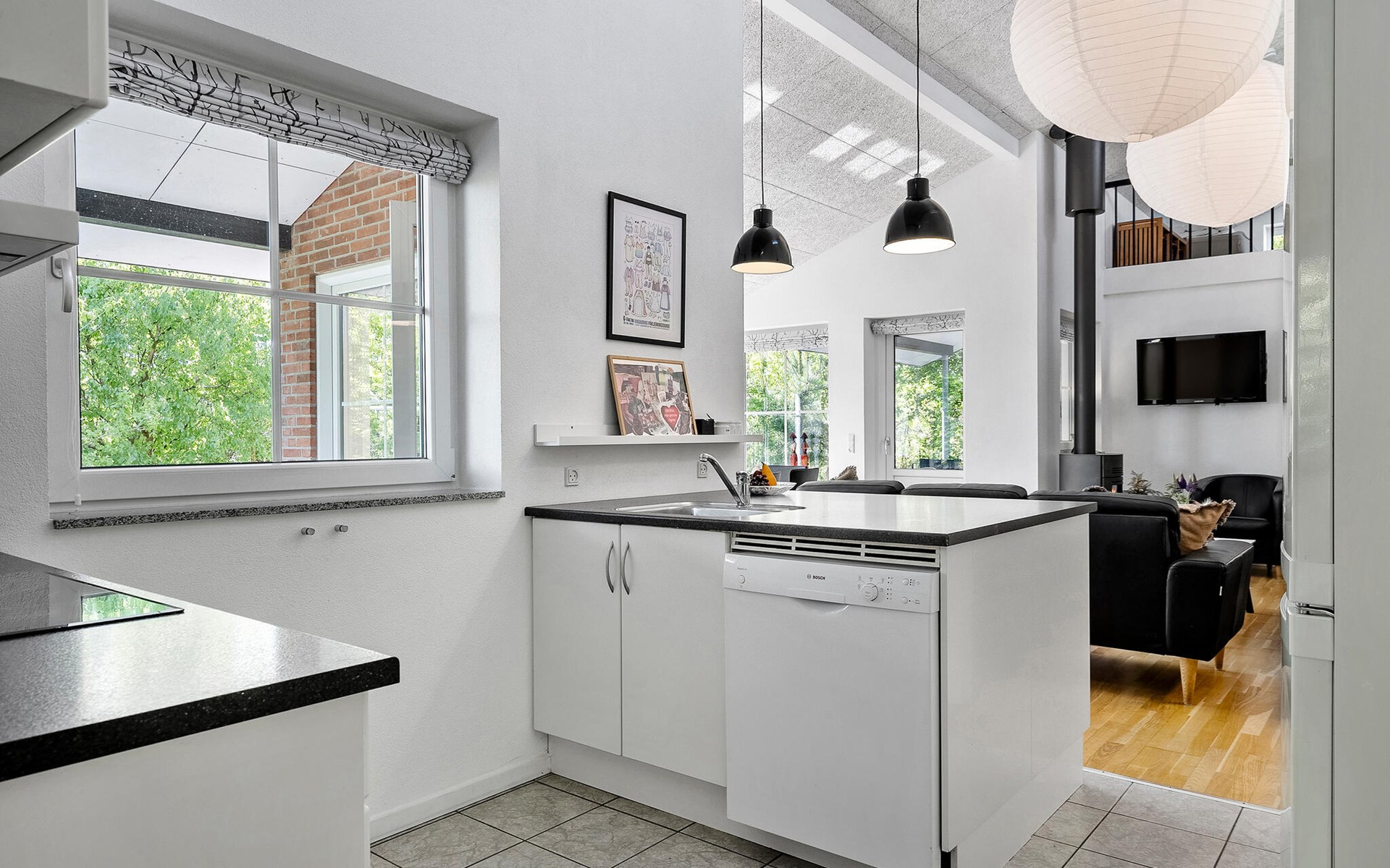 Nestled in a cosy natural setting, you will enjoy plenty of privacy and numerous extras for the whole family to enjoy in this comfortable home. Chat with your loved ones while cooking in the open-plan kitchen and enjoy the elegant ambience in the bright living area while the wood-burning stove crackles softly. Treat yourself to soothing moments in the sauna or whirlpool and gather together for cosy film evenings on the inviting sofa area.