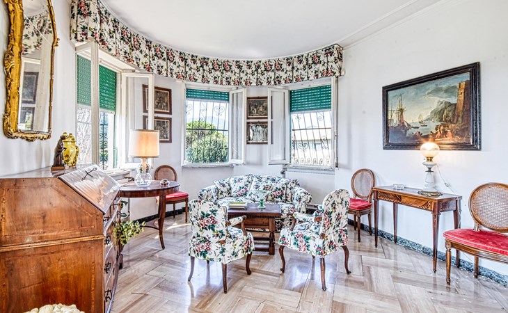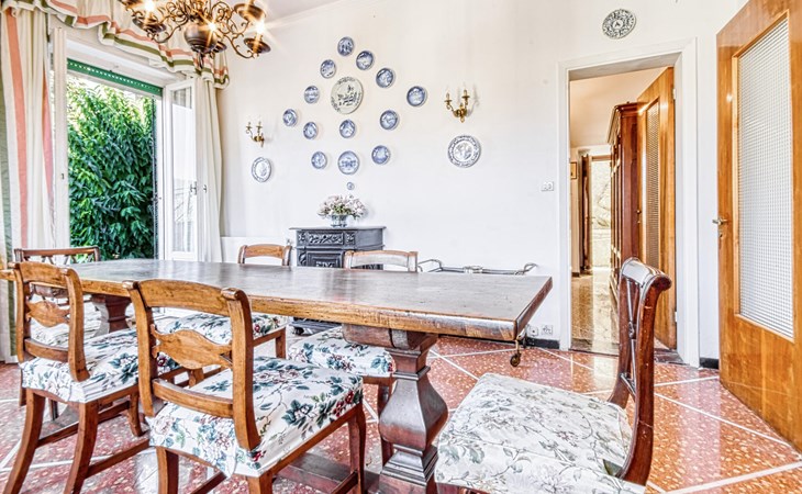 Enjoy a high-class holiday in this elegant and spacious holiday home in Rapallo. The traditional furnishings with playful decorative elements create a warm and inviting ambience. Ideal for your family, the house offers plenty of space to relax and get away from it all. The conservatory and the spacious terrace with views of the sea and the city are perfect places to enjoy the peace and quiet. The idyllic garden invites you to spend sunny hours outdoors - an oasis of relaxation that will enchant you.