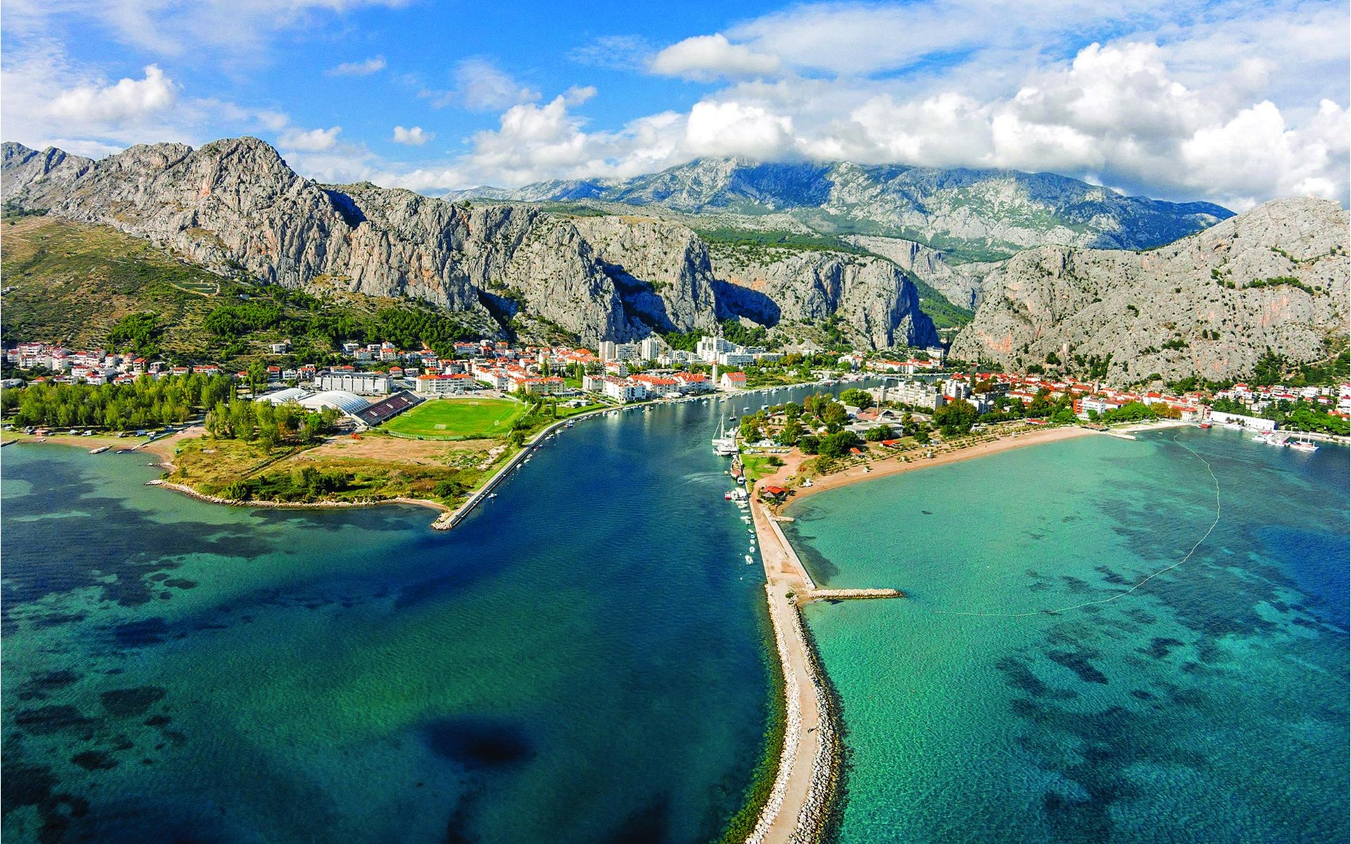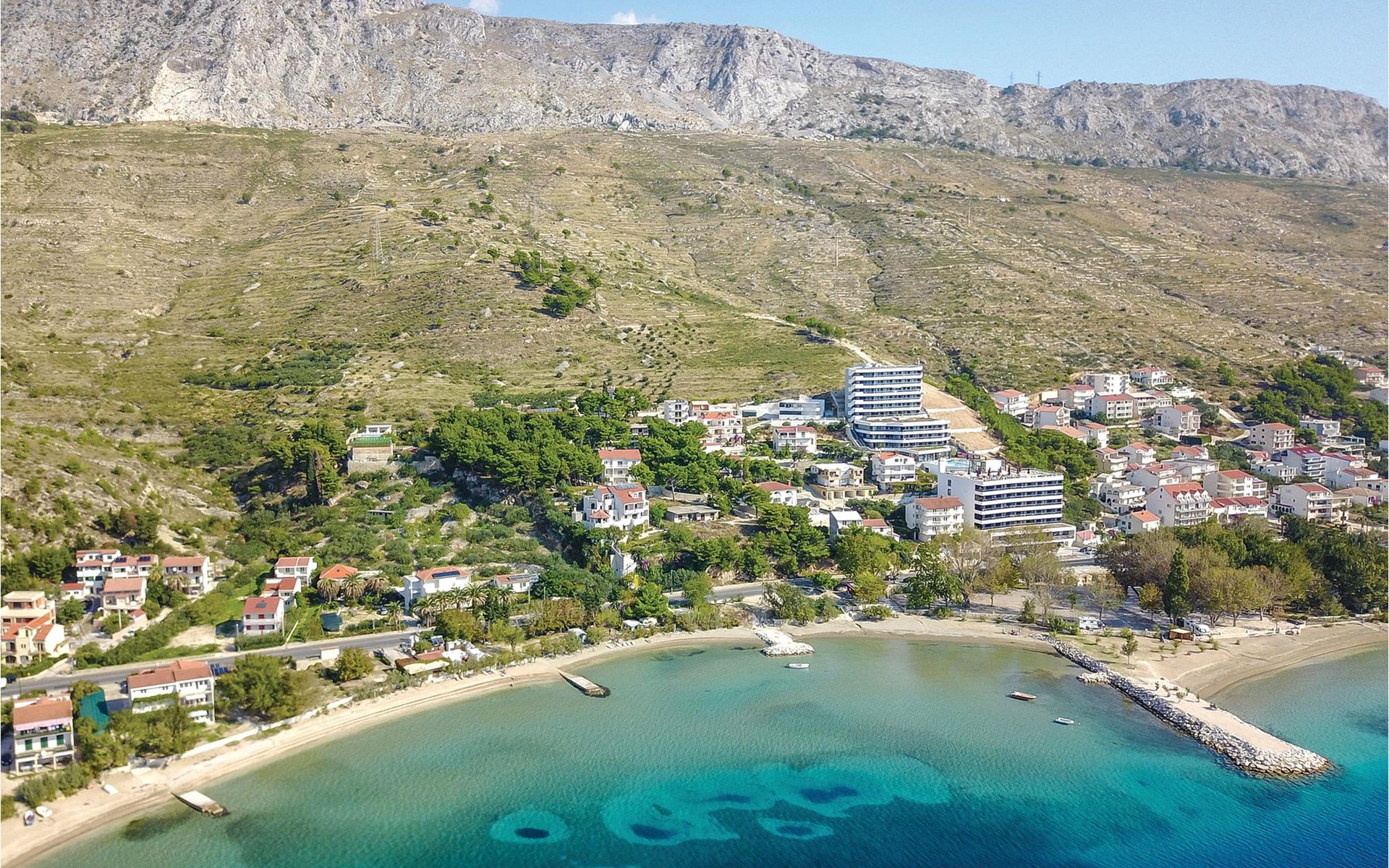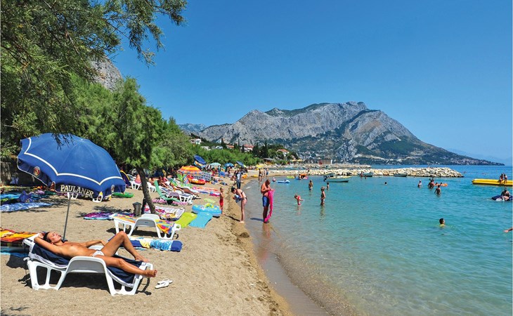Relax on the extensive sandy beach, which slopes gently into the sea and is ideal for swimming and sunbathing. Enjoy the clear waters of the Adriatic and the view of the surrounding islands. Explore the old town of Omi with its historic alleyways, fortresses and cosy restaurants. Visit the Mirabela Fortress or climb up to the Fortica Fortress to enjoy the panoramic view of the coast and the Cetina Valley.