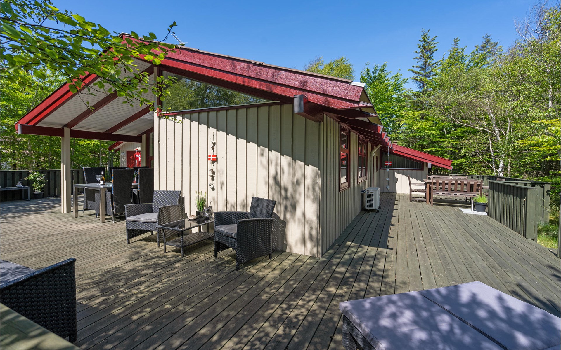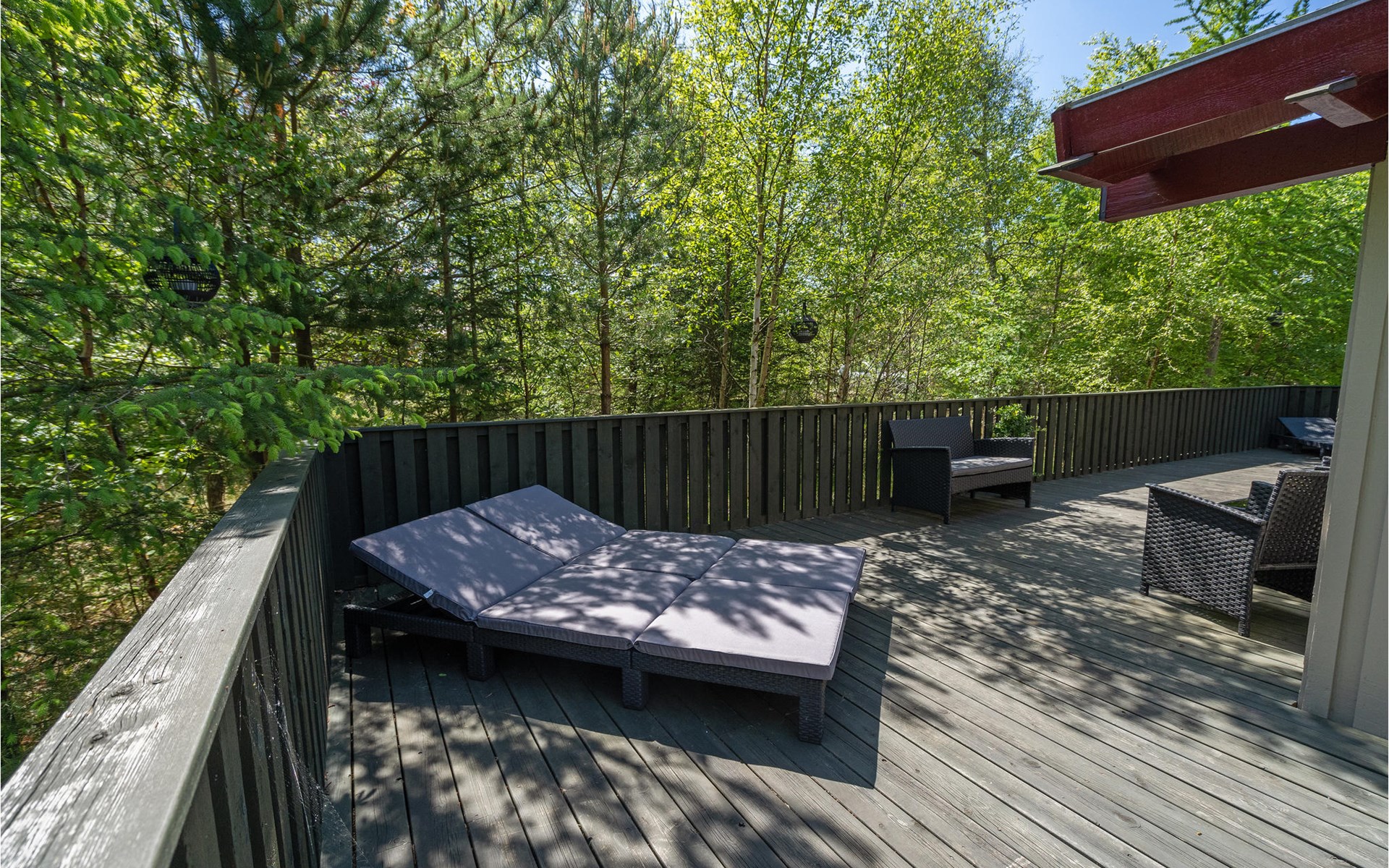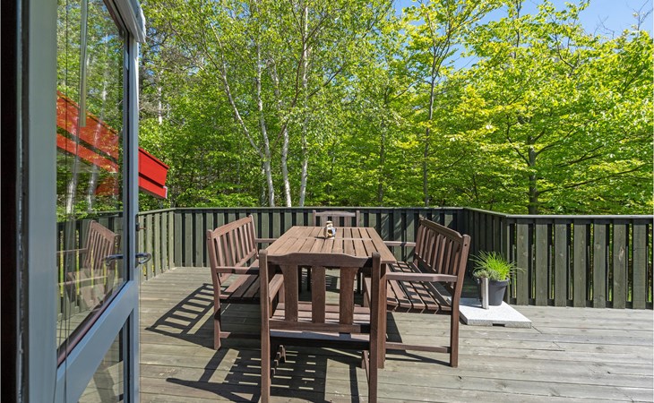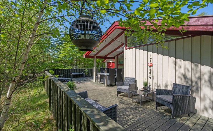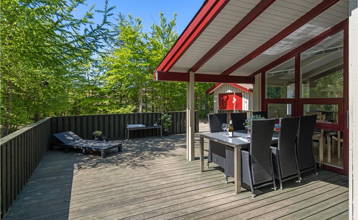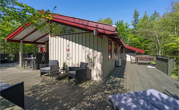 At the end of a closed road, on a cozy, quiet forest plot, lies this well-kept and beautiful house with wonderful terraces and garden furniture.