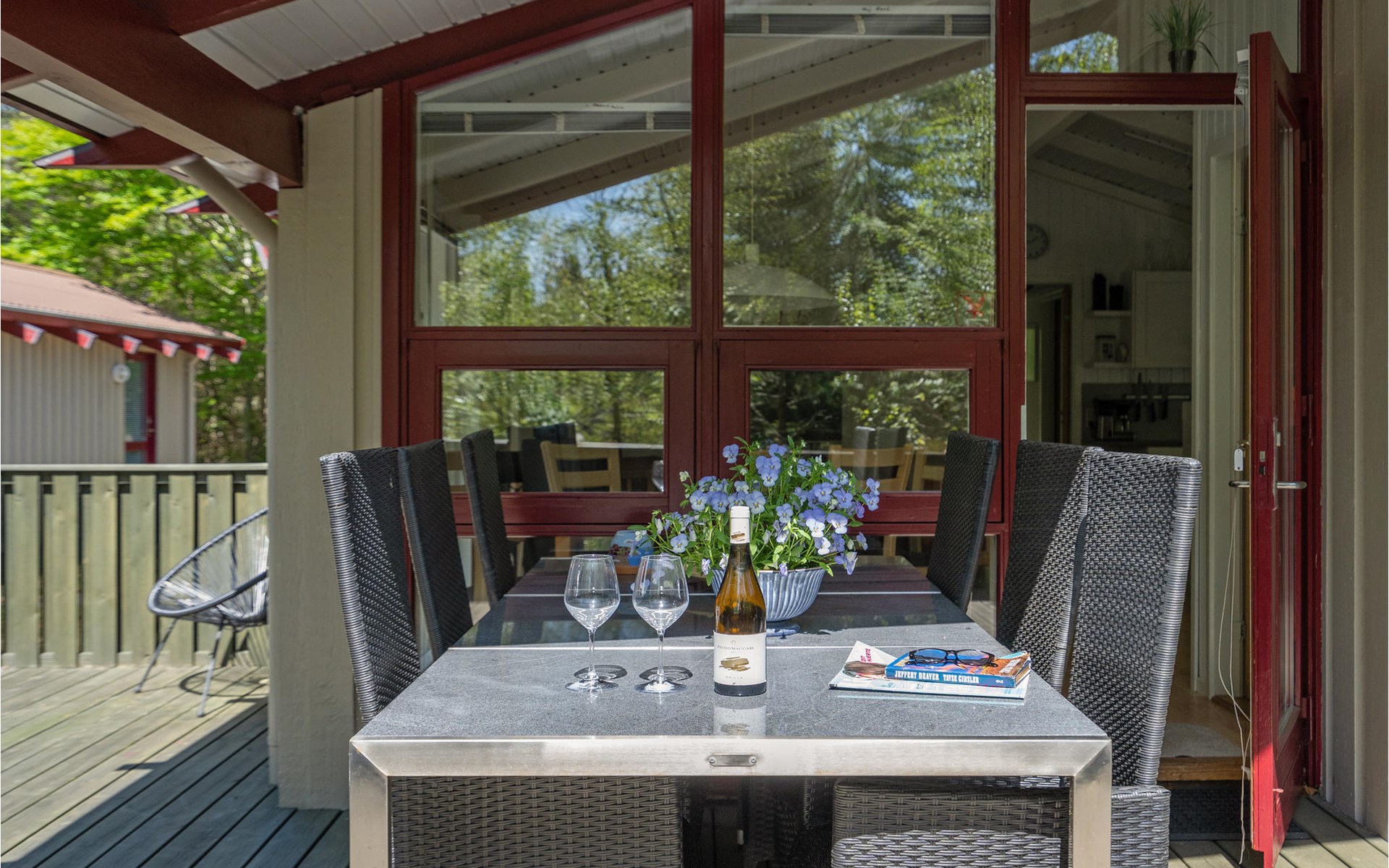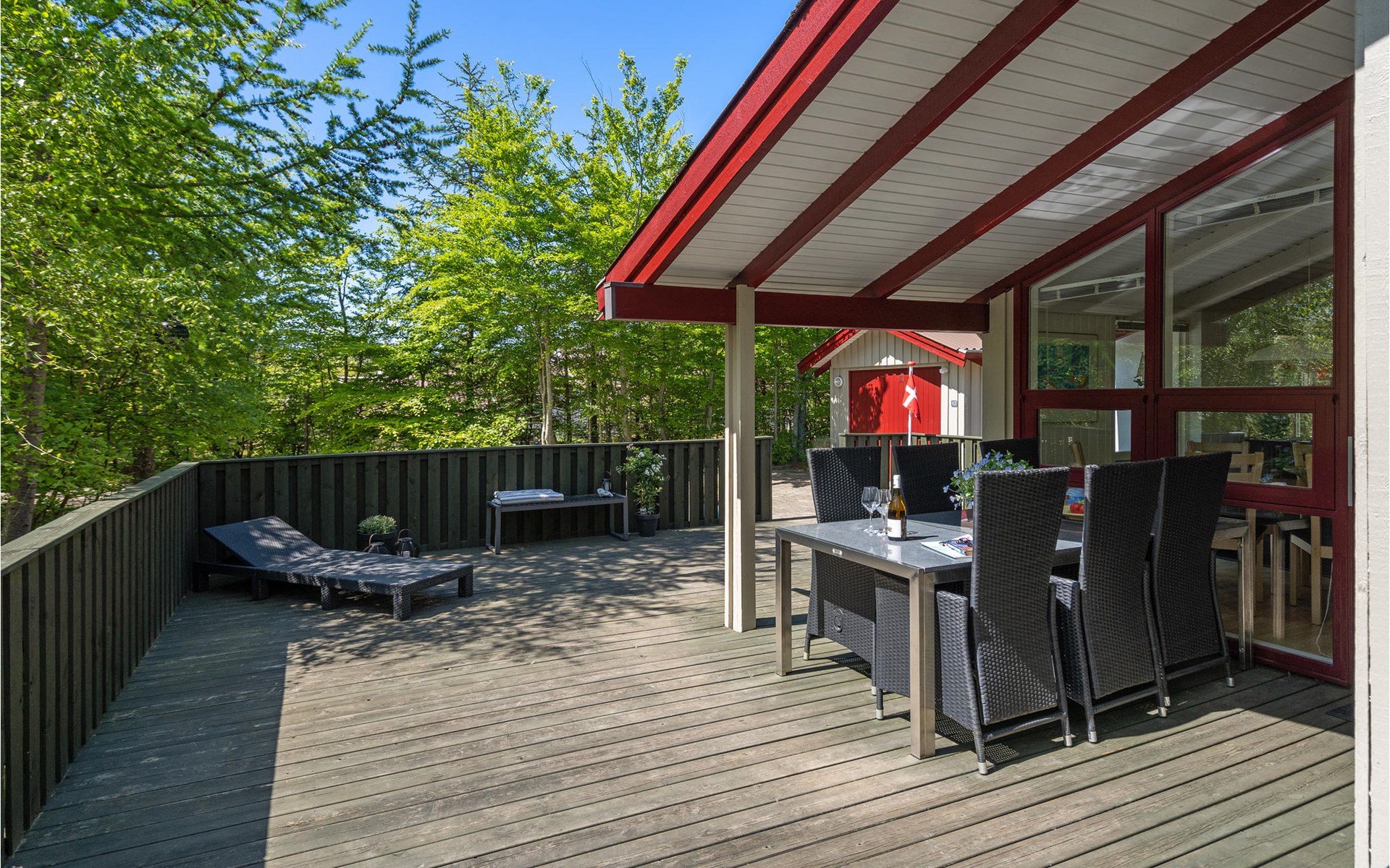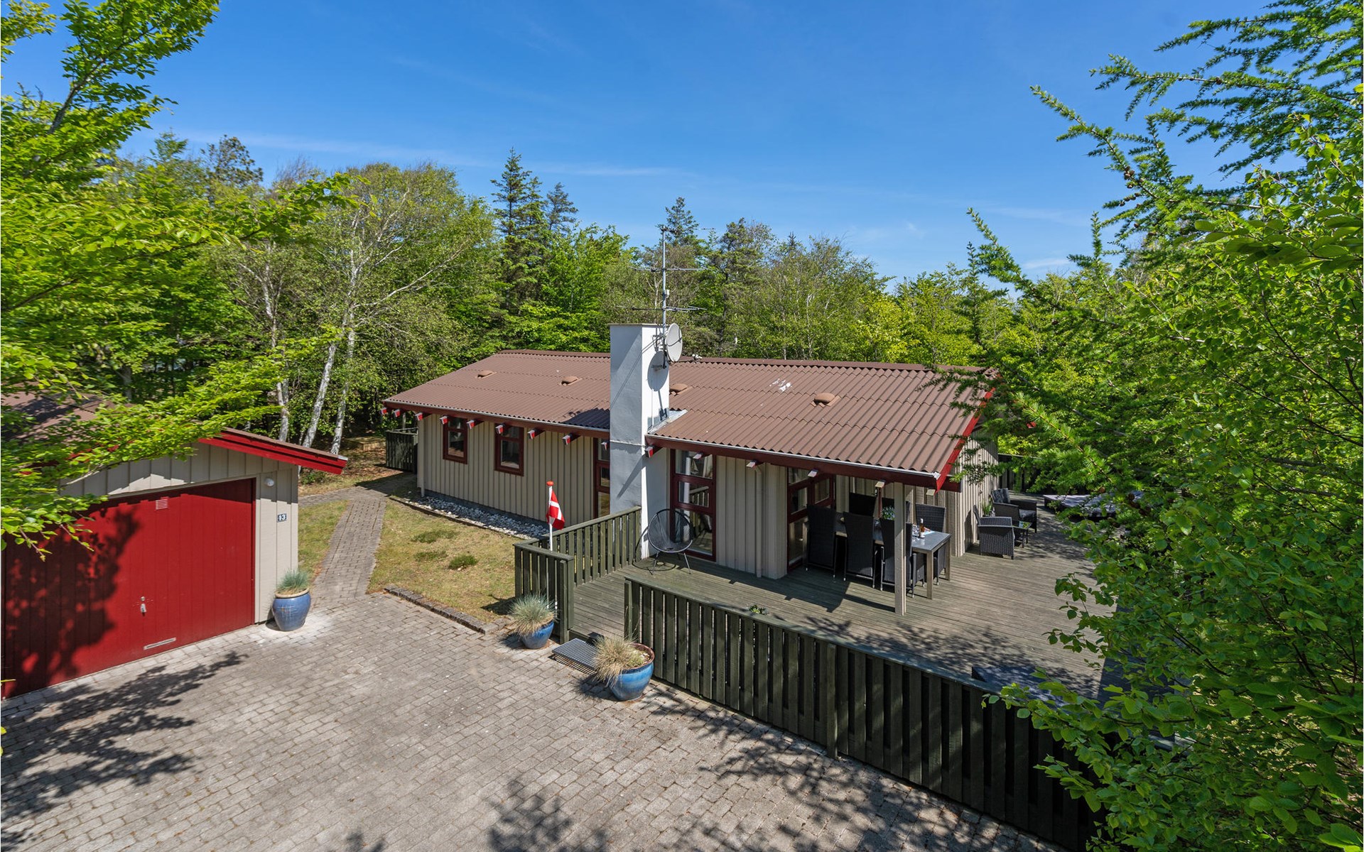 At the end of a closed road, on a cozy, quiet forest plot, lies this well-kept and beautiful house with wonderful terraces and garden furniture.