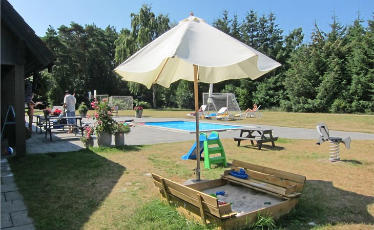 Dueodde Ferieby is popular and offers both an outdoor pool and a children's pool (heated approx 15/6-15/9), free wifi. PC + Xbox (main building), laundry (payment), table tennis, playground (soccer goal, outdoor chess, swings, slide and sandbox), sink and freezer for fish, bike rental and beautiful green area with a common barbecue and campfire area.