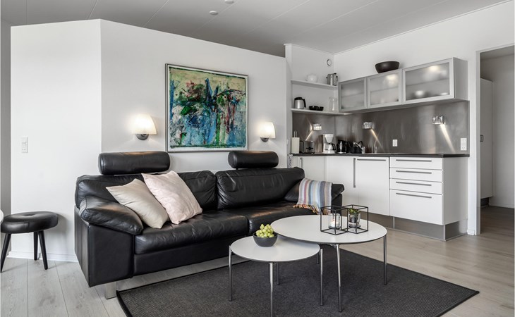 Welcome to Fanø Bad and this beautiful holiday apartment, which offers you and your family a lovely home away from home. Arrive here and feel at home. In the bright living room you will find everything you need for a carefree holiday. Conjure up a delicious breakfast in the morning and make plans for your activities and excursions on the island while you eat. Use your private balcony for breakfast and enjoy your first cup of coffee and the view of the dunes. In the evening, you can put your feet up on the sofa, relax and watch an entertaining film together.