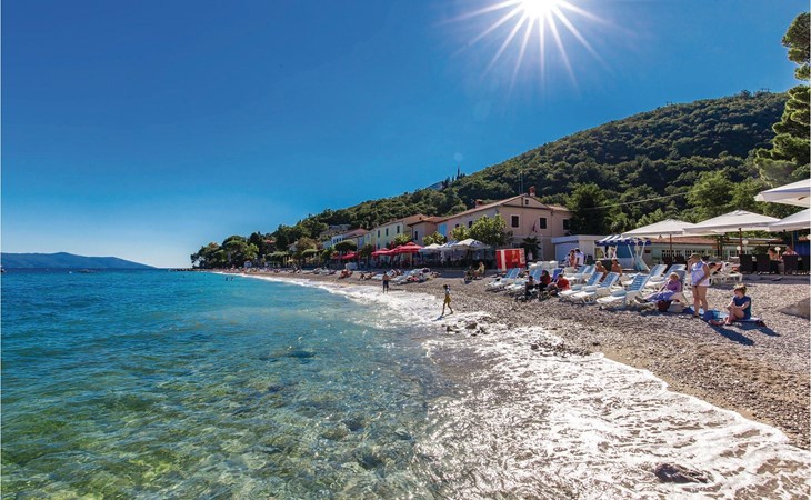 Stroll the few steps to the sea and enjoy the clear water on the pebble beach or the rocky coast. Drive to Opatija and be enchanted by the magnificent villas from the 19th century, which tell of the history of the charming coastal town as a spa resort.
