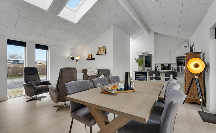 Welcome to this spacious and well-equipped holiday home, which invites you to take a relaxing break near the beach with its bright and stylish living atmosphere. Turn fresh produce from the farm shop into culinary highlights in the open-plan kitchen and take a seat at the inviting dining table. Make yourself comfortable on the comfy armchairs for stimulating conversations or stream your favourite series.