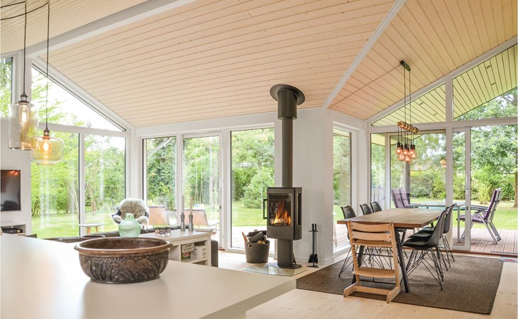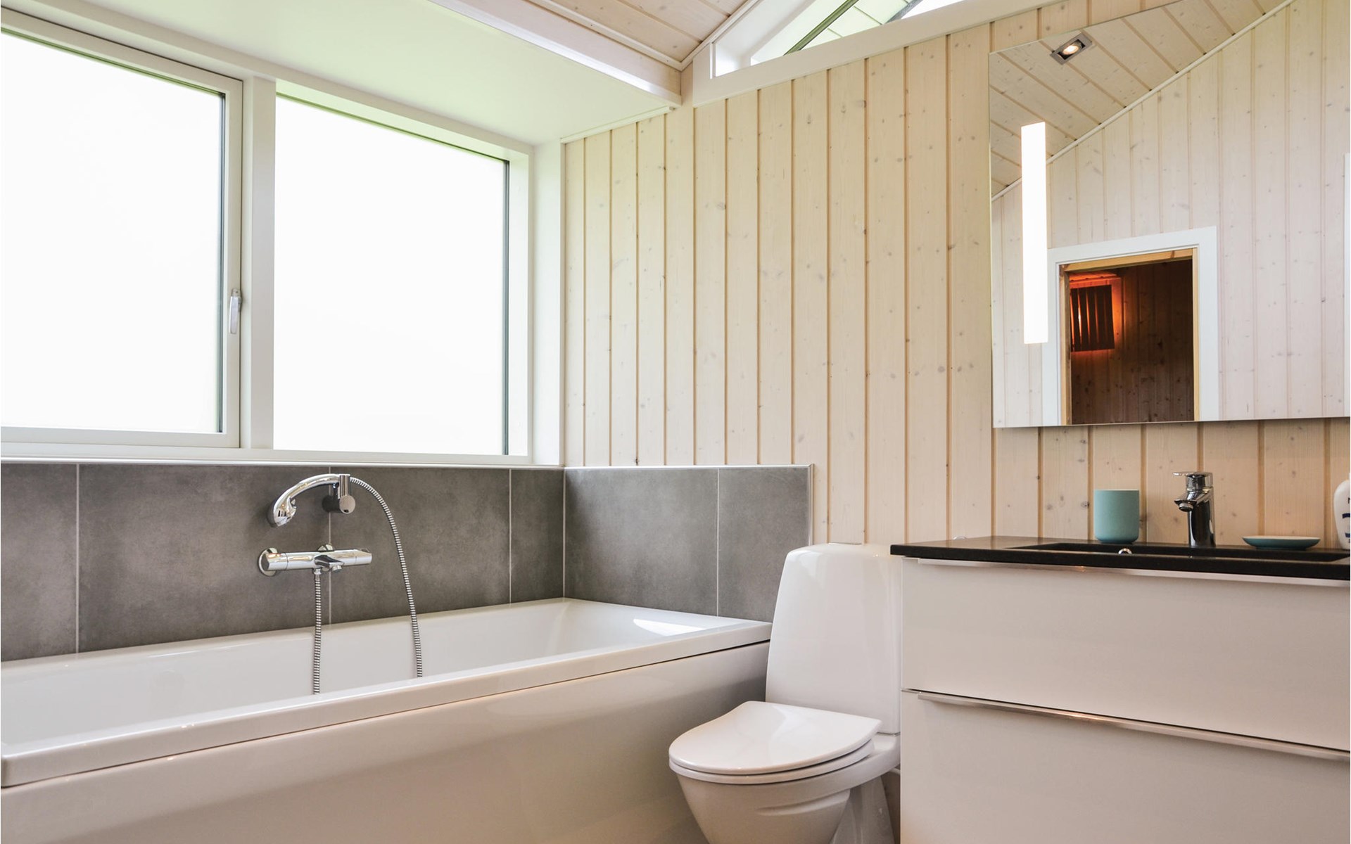 In an attractive vacation area, within walking distance from one of the most popular bathing beaches in all of Denmark, you will find this vacation home equipped with all comforts. Here you can spend your vacation all year round and take advantage of the many opportunities for activities nearby. The house is tastefully decorated, with an open kitchen-living room with access to the terrace, which is partially covered - here you can spend many hours. Nice, large master bedroom with private bathroom, and 2 other bedrooms. After a refreshing walk by the sea, you can warm up in the sauna or relax in the bathtub. There is plenty to do in the surrounding area, for example visit Tegners Museum and Sculpture Park, Nordsjællands Fuglepark bird park, Esrum Monastery and last but not least the beautiful castles of Kronborg, Frederiksborg and Fredensborg in North Zeeland. In less than an hour drive you can reach the Tivoli, the zoo and the shopping street Strøget in Copenhagen.