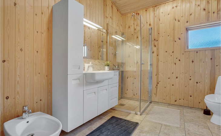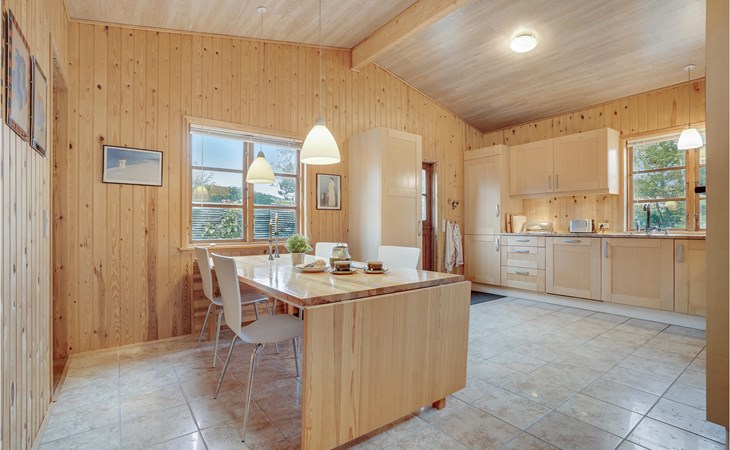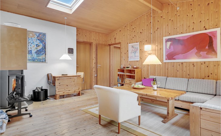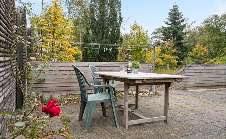 You are in Smidstrup Strand and stay in a well furnished vacation home. The huge kitchen-living room is the heart of the house and invites you to chat and get together. The bedrooms are also spacious, 2 are even equipped with TV and DVD player. Enjoy the beautiful vacation days also on the sunny terrace with a good breakfast or in the evening with a glass of wine.