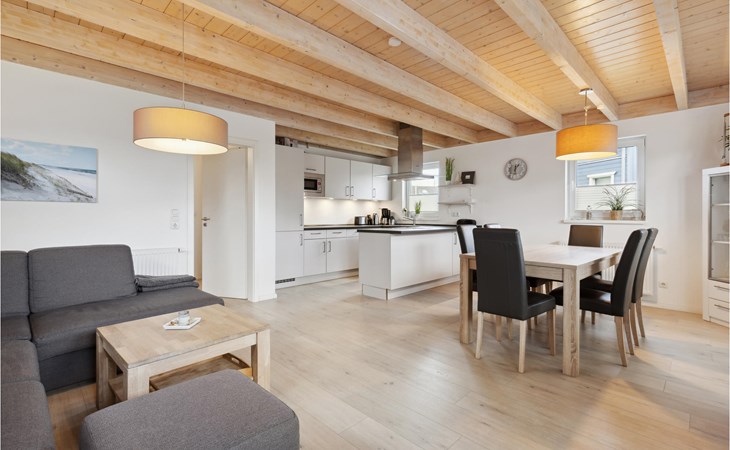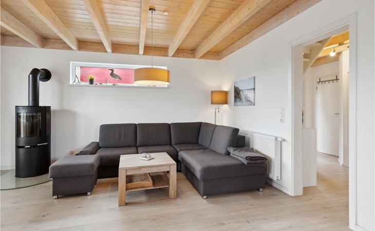 This modern Scandinavian-style wooden house is located directly on Süssau beach, just a few steps away from the natural beach.
