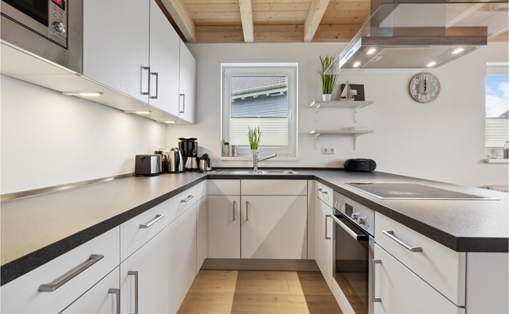 Thanks not only to the private sauna, but also to the cosy fireplace in the living area, this house is the perfect place for rest and relaxation even in the cooler months of the year.