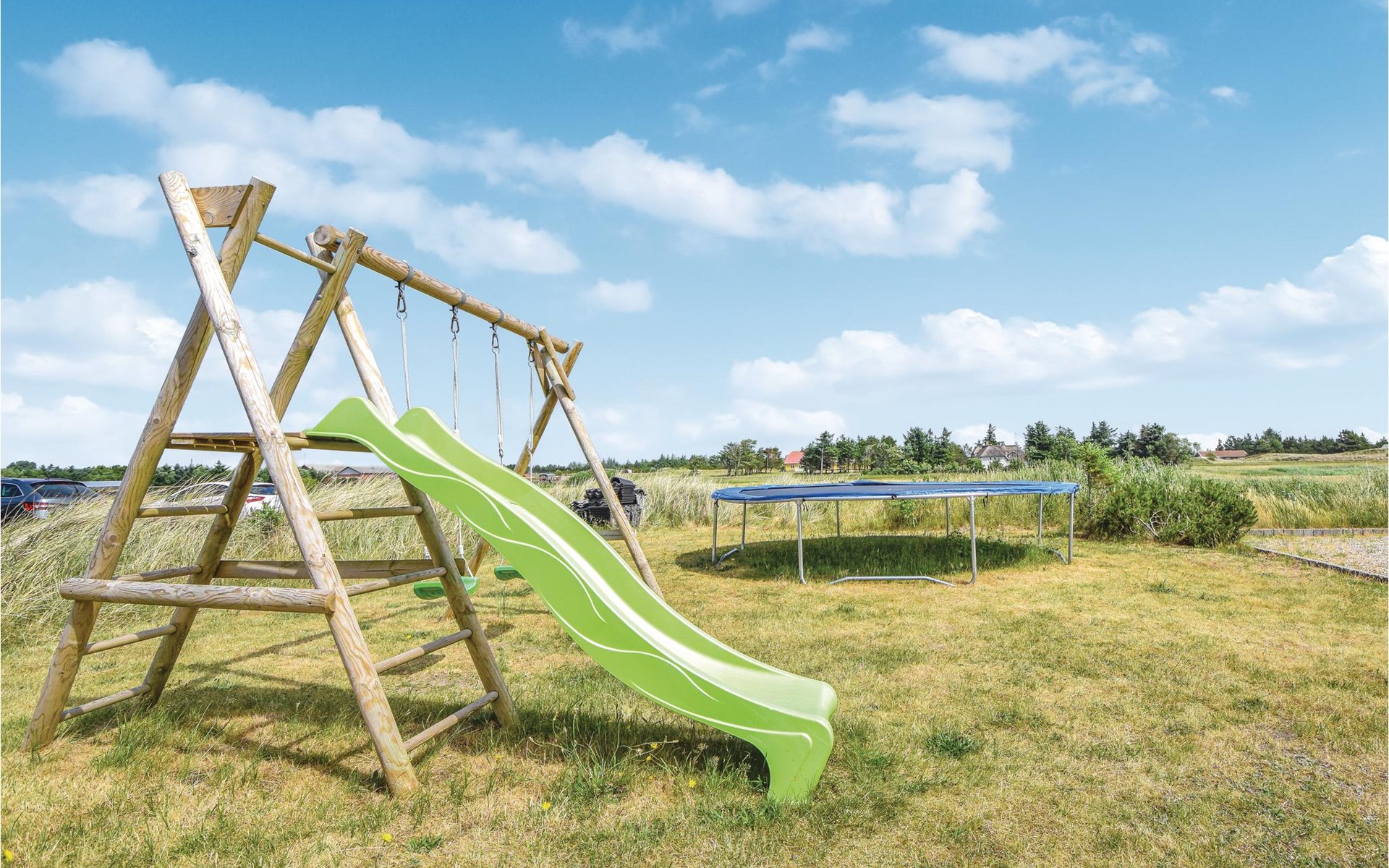 Around the house are several terraces, wind shade and sun are thus easy to find. Here you can spend the whole day, eat together or end the day with a cozy barbecue. On the large property children can play on the swing, slide, trampoline or on the lawn. There is plenty of room to romp around. There is also a small soccer field in the garden.