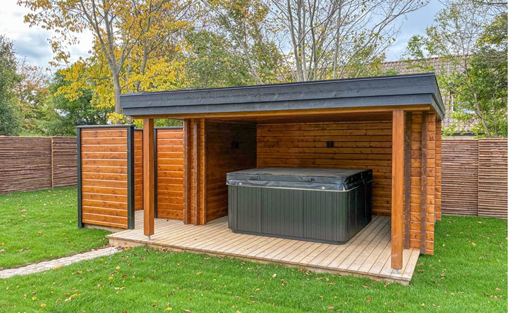 Step out onto the terrace with your morning coffee and savour the scent of wood and fresh forest air. The peaceful surroundings with their green garden and tall trees invite you to take a deep breath and start the day in a relaxed manner. You can enjoy a leisurely breakfast on the covered terrace or lean back in the comfortable lounge furniture with a good book. Later, relax in the warm water of the whirlpool or light the barbecue in the evening and bring the day to a cosy close with good food and candlelight.