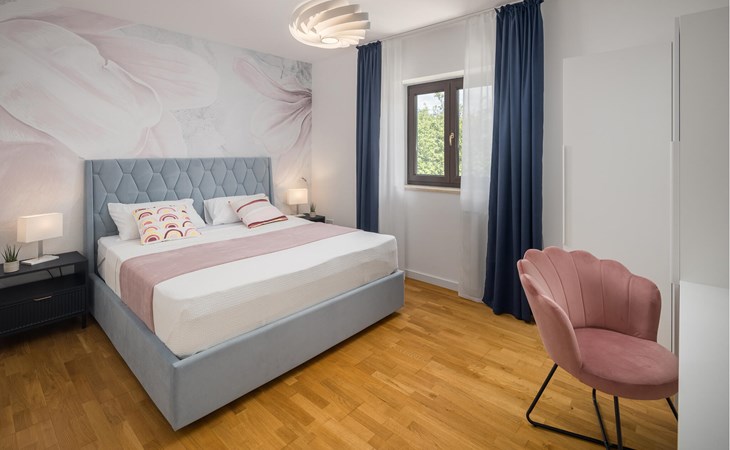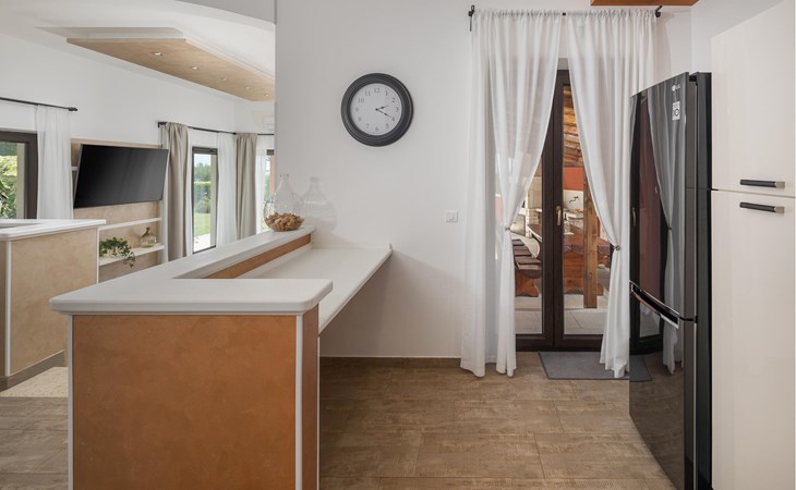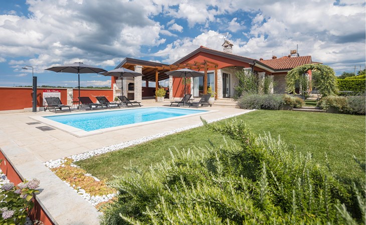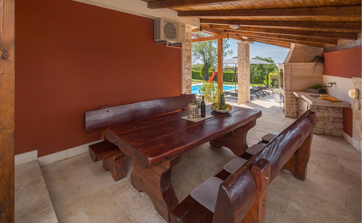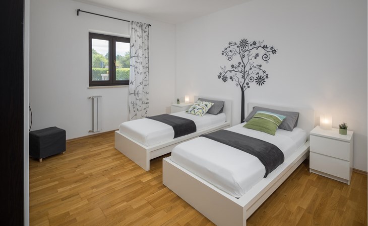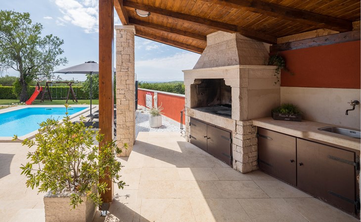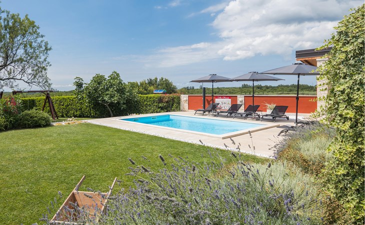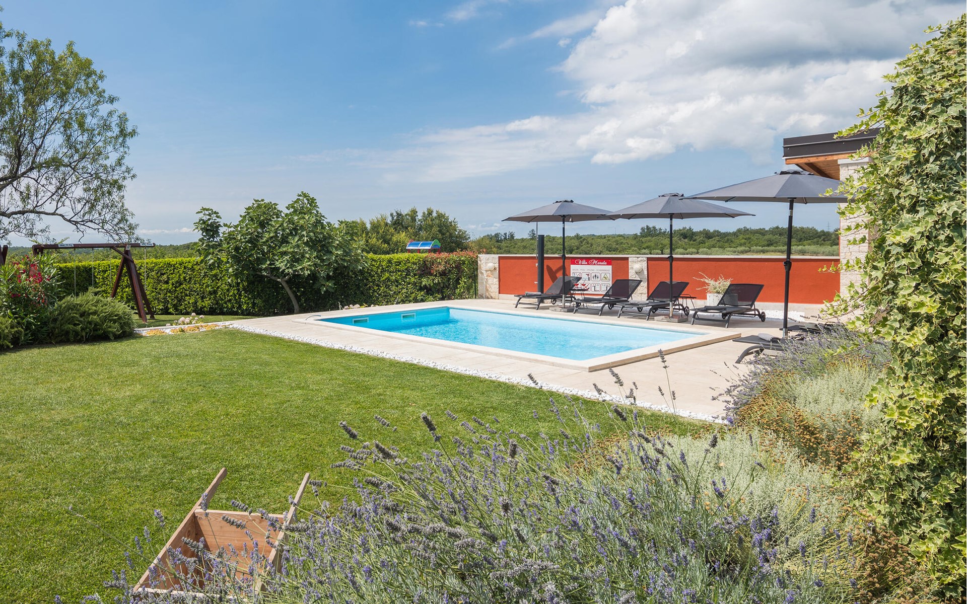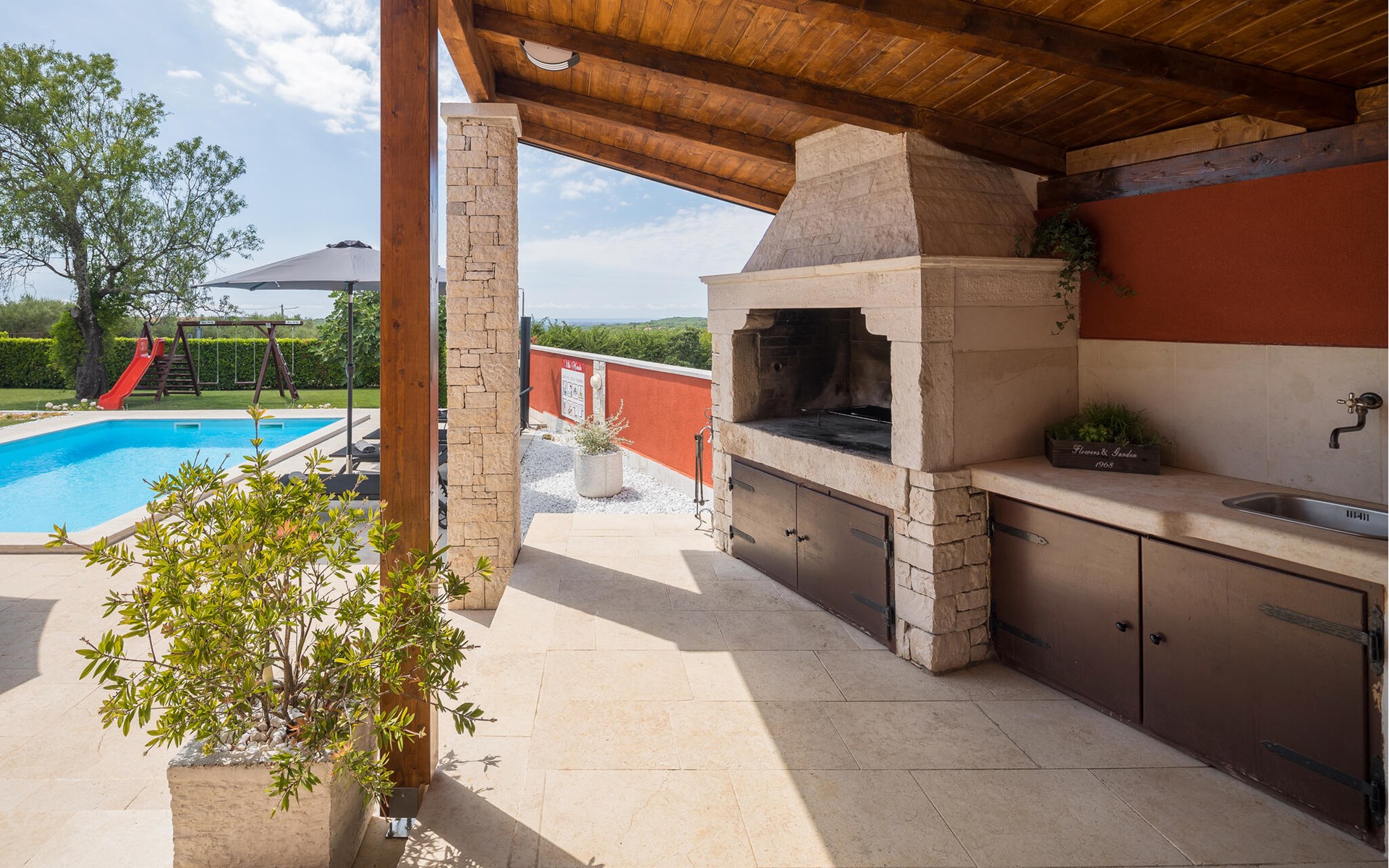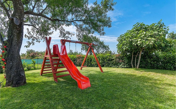 Spend your holiday at Villa Marula, which guarantees lots of fun for every generation. While the children have fun in the playground, you can choose between table tennis and table football. Of course, you can also relax in the private pool. The villa is a charming country house with an open-plan layout, which makes it even more cosy and comfortable. The villa has 4 bedrooms and 3 bathrooms. As Villa Marula is designed for families, the villa can accommodate up to 8 people. Directly from the living room you have access to two terraces, which are covered and ideal for relaxing in the shade. One of the terraces is also equipped with a stone barbecue and solid wood garden furniture. Visit Istria, one of the most beautiful regions in Croatia, and enjoy the sunny weather while the air smells of lavender and you hear nothing but birdsong.