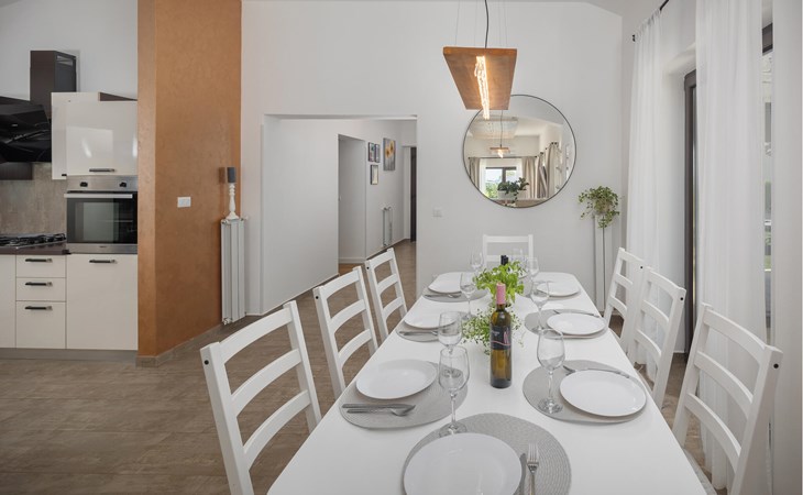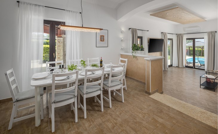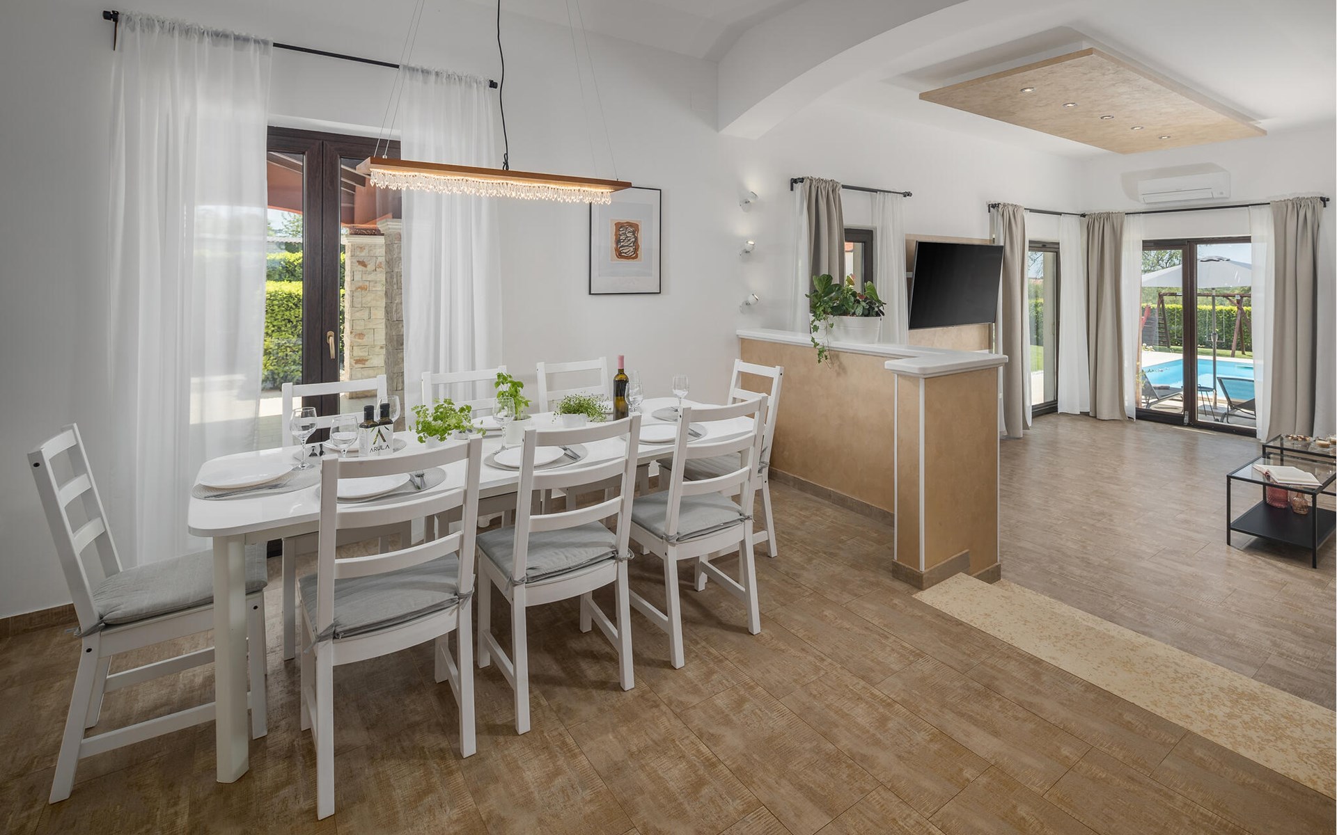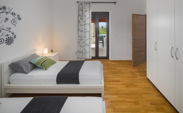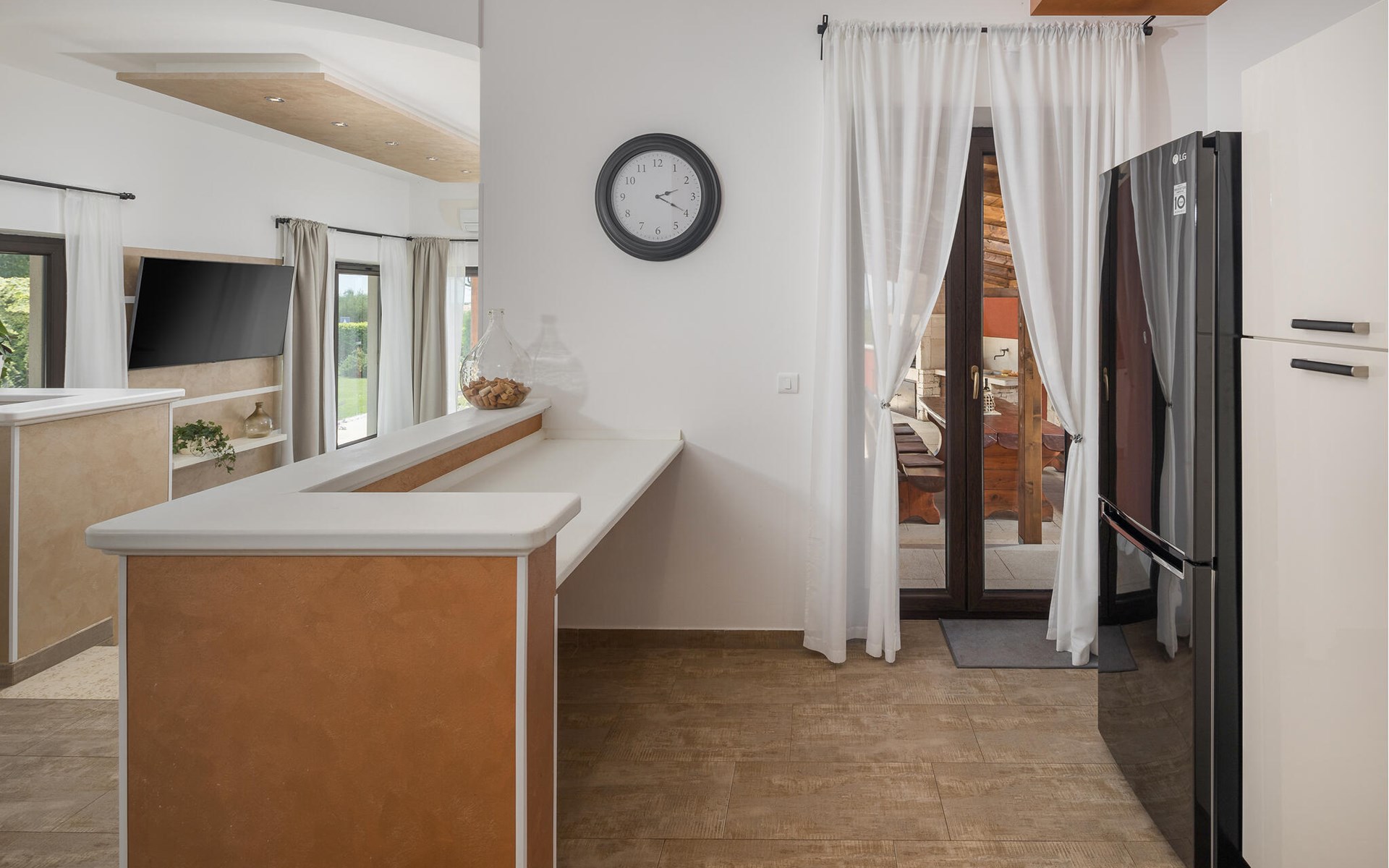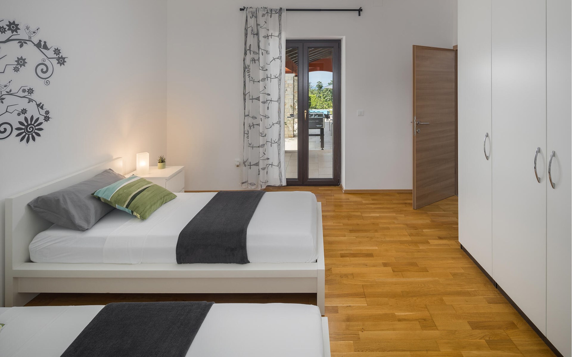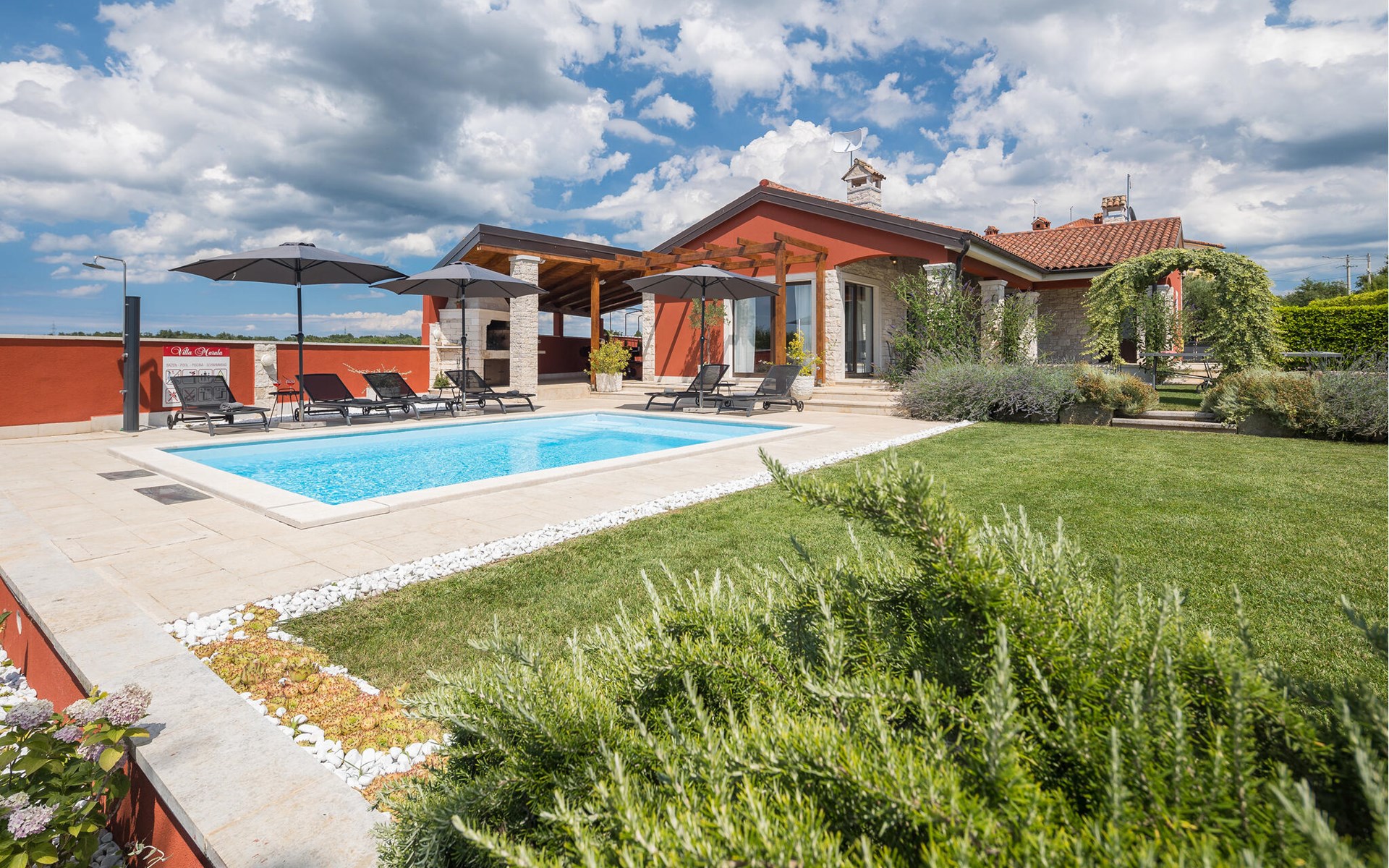 Spend your holiday at Villa Marula, which guarantees lots of fun for every generation. While the children have fun in the playground, you can choose between table tennis and table football. Of course, you can also relax in the private pool. The villa is a charming country house with an open-plan layout, which makes it even more cosy and comfortable. The villa has 4 bedrooms and 3 bathrooms. As Villa Marula is designed for families, the villa can accommodate up to 8 people. Directly from the living room you have access to two terraces, which are covered and ideal for relaxing in the shade. One of the terraces is also equipped with a stone barbecue and solid wood garden furniture. Visit Istria, one of the most beautiful regions in Croatia, and enjoy the sunny weather while the air smells of lavender and you hear nothing but birdsong.