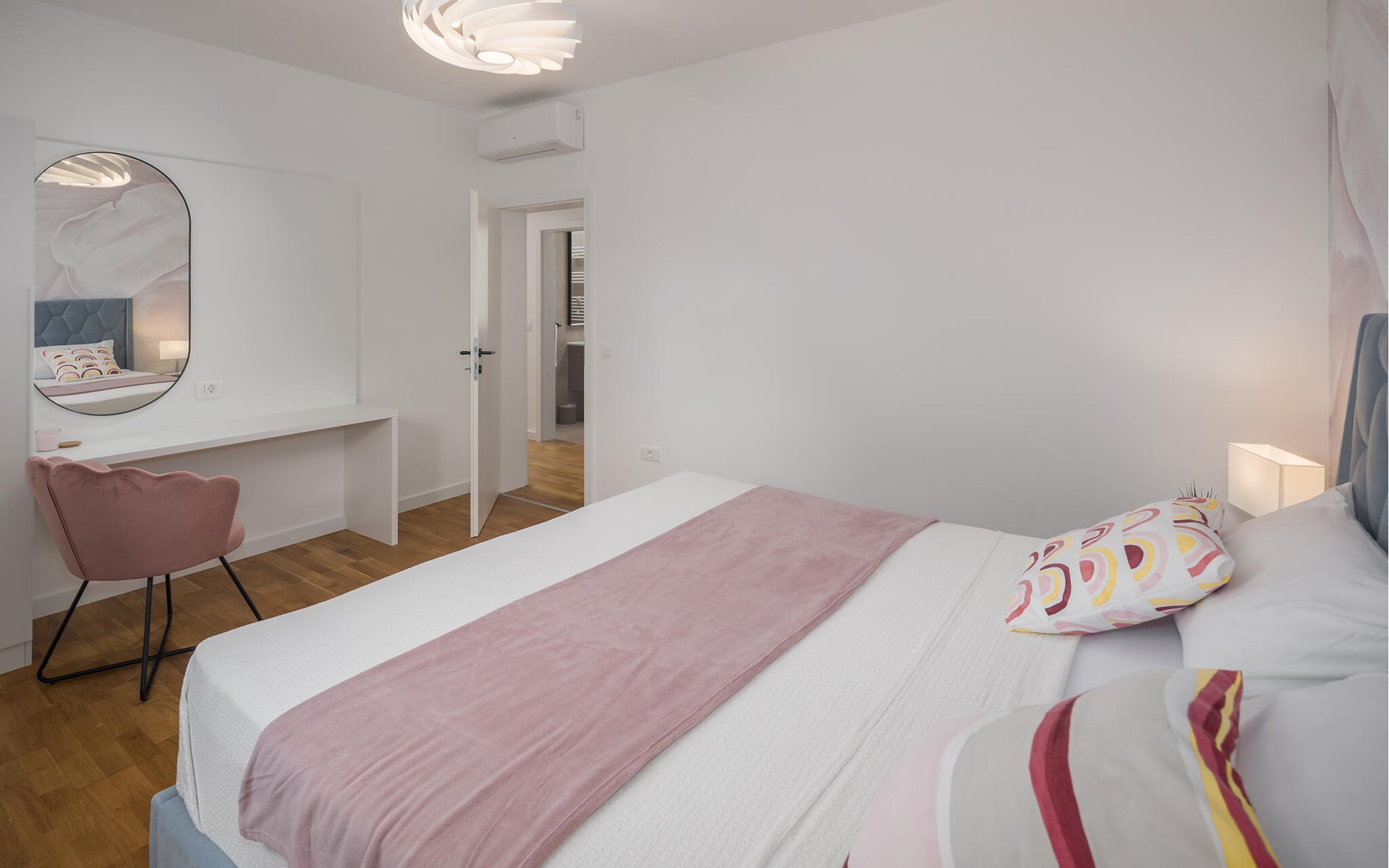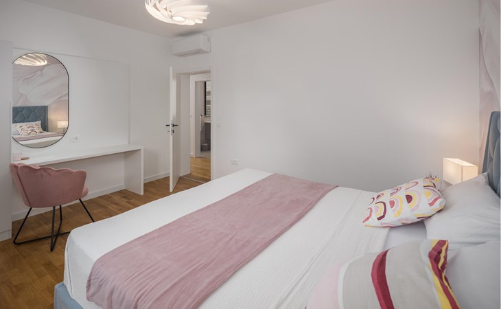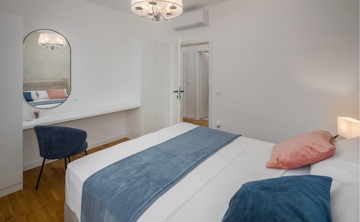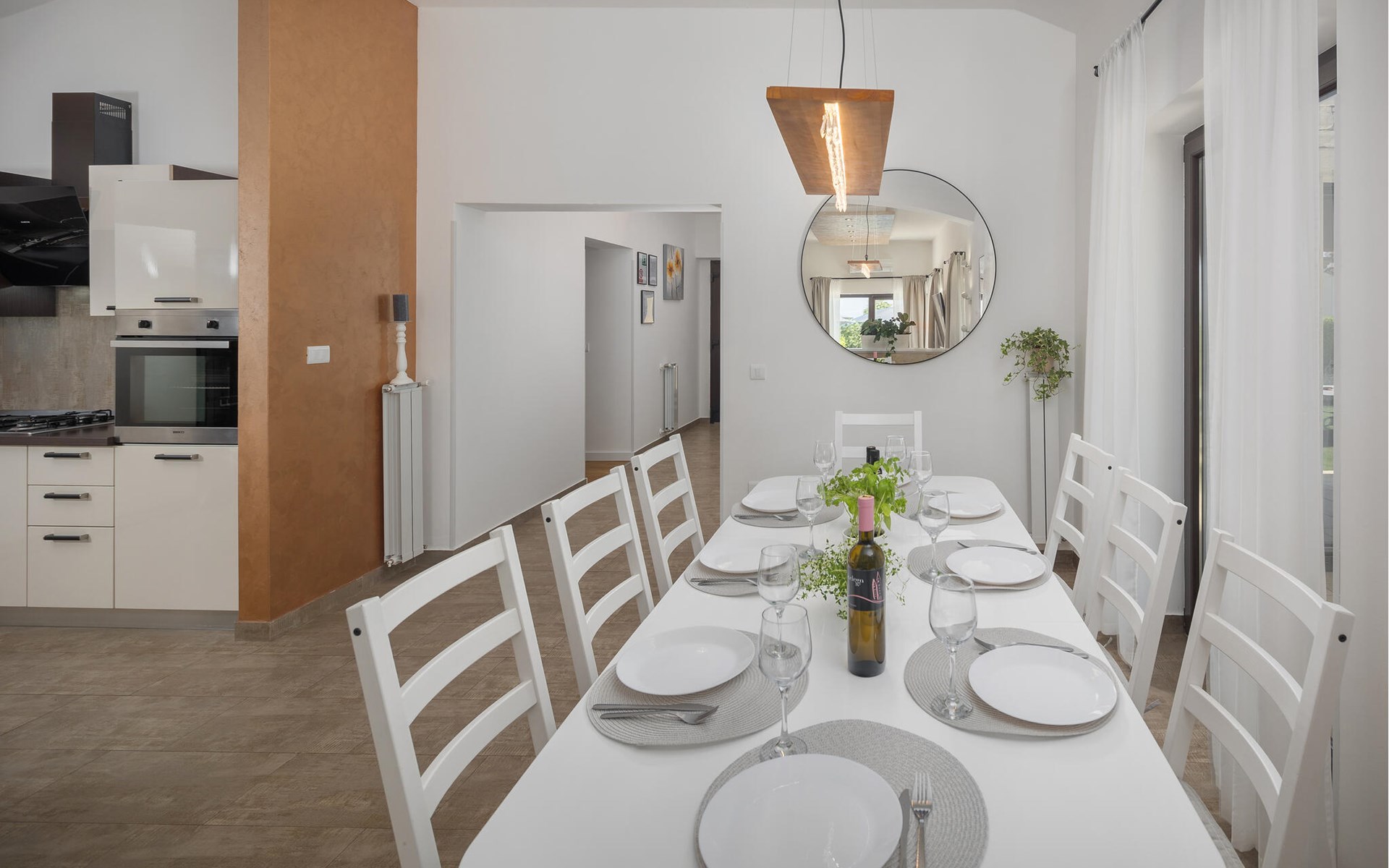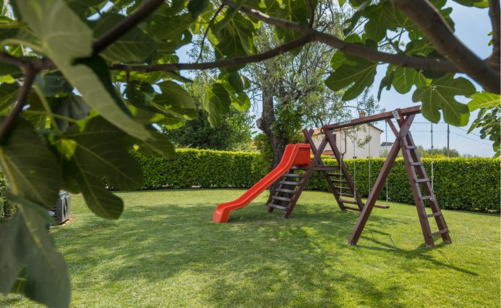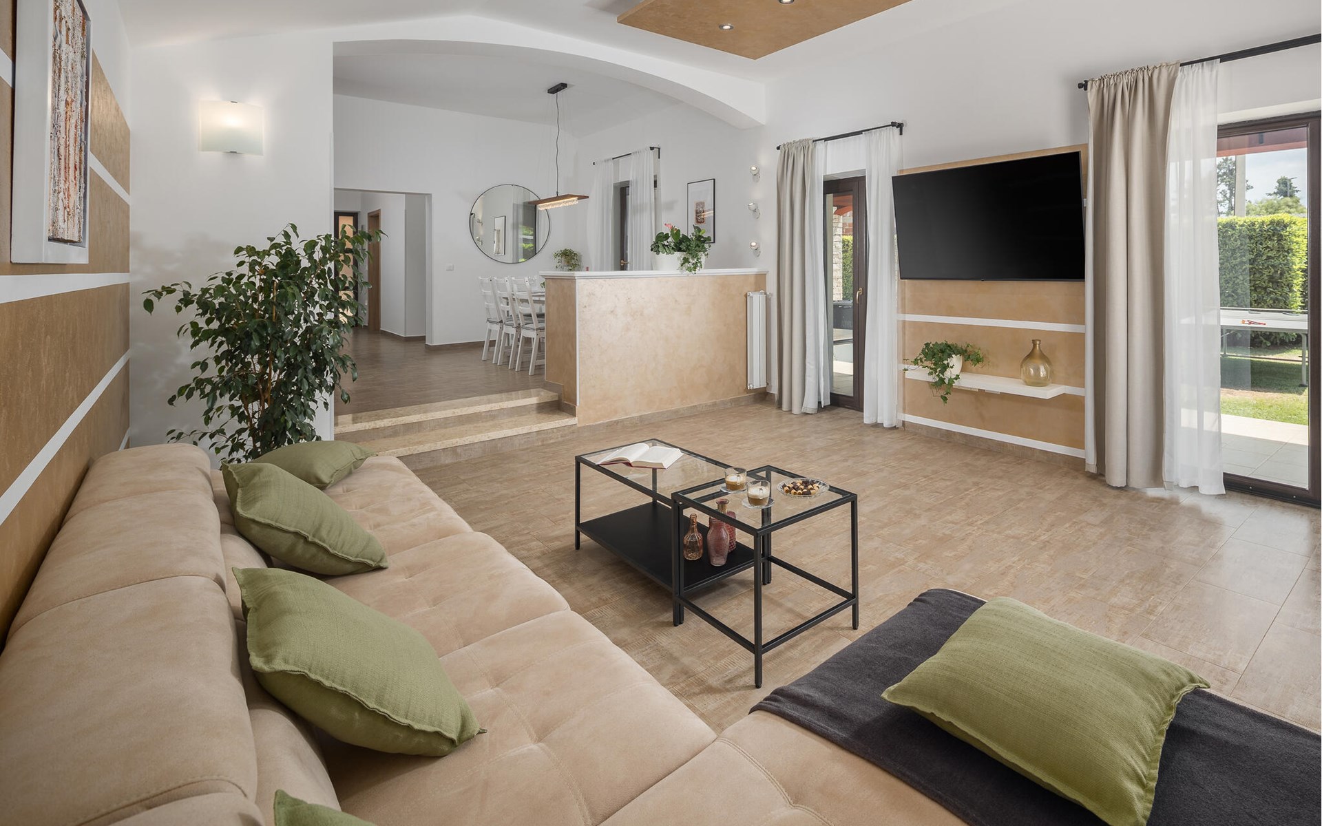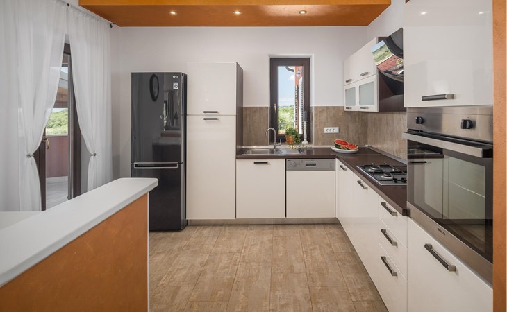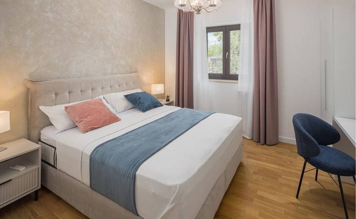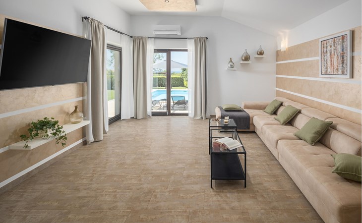 Spend your holiday at Villa Marula, which guarantees lots of fun for every generation. While the children have fun in the playground, you can choose between table tennis and table football. Of course, you can also relax in the private pool. The villa is a charming country house with an open-plan layout, which makes it even more cosy and comfortable. The villa has 4 bedrooms and 3 bathrooms. As Villa Marula is designed for families, the villa can accommodate up to 8 people. Directly from the living room you have access to two terraces, which are covered and ideal for relaxing in the shade. One of the terraces is also equipped with a stone barbecue and solid wood garden furniture. Visit Istria, one of the most beautiful regions in Croatia, and enjoy the sunny weather while the air smells of lavender and you hear nothing but birdsong.
