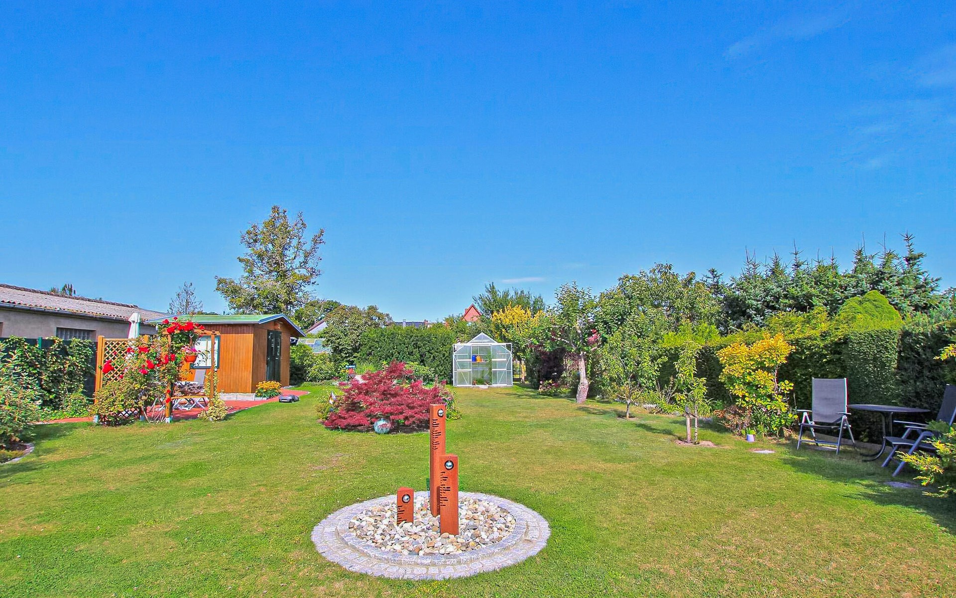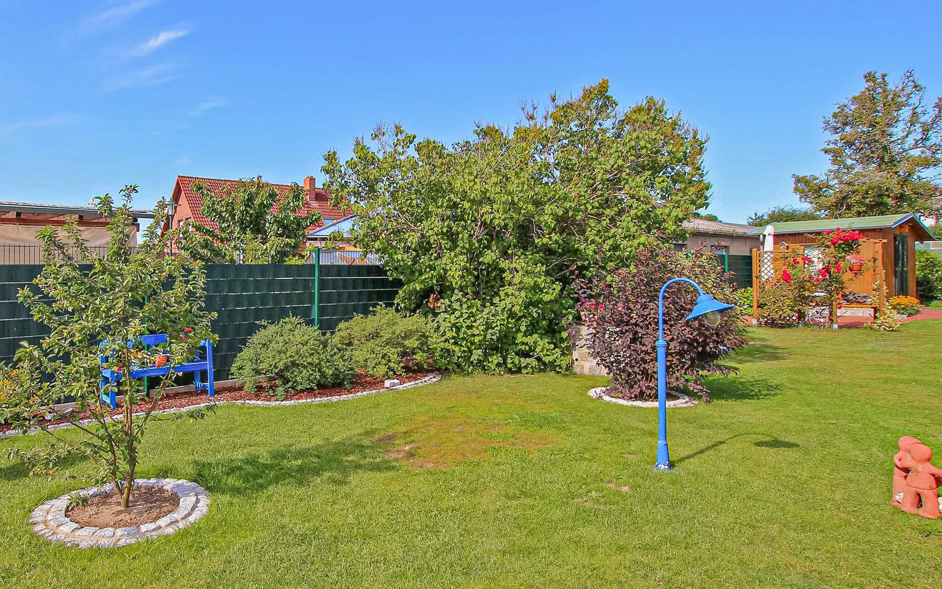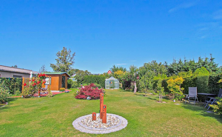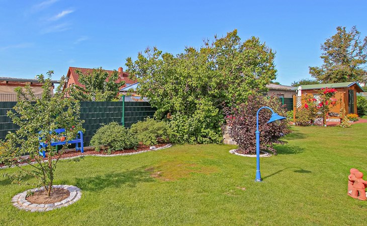 Quietly situated on the outskirts of Waren (Müritz), in a residential area, the 60 m² holiday home for up to 2 adults and 1 child is located at the rear of the approx. 1,000 m², fenced and very well-kept residential property. The public swimming pool on the Müritz is approx. 1000 m away and the town centre with its harbour, promenade and charming old town is approx. 2 km away (public transport). Shopping facilities are in the immediate neighbourhood.