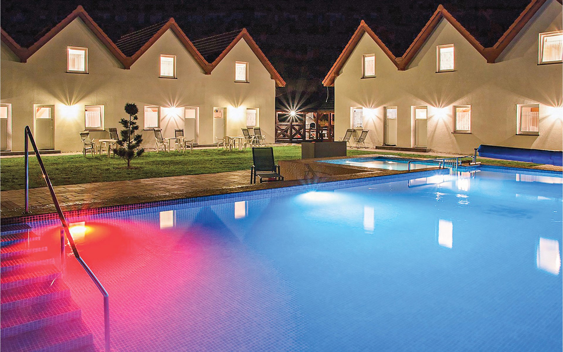 Explore the common property and spend many hours swimming in the large seasonal pool. For physical exercise, it is advisable to play a game or two on the volleyball and soccer fields or use the table tennis and ping-pong facilities. In the evening you can prepare a delicious dinner in the common grill house. The location of the facility is quiet, nearby are meadows and green areas, so your dogs also have run.