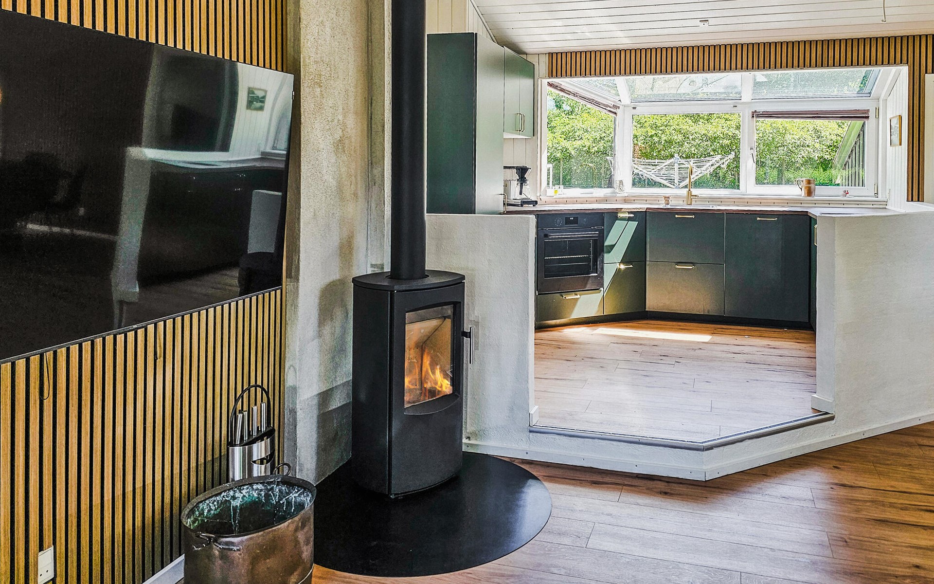 This beautiful house welcomes you with comfort and simple elegance. A light-flooded living room with a comfortable sofa area invites you to spend cosy hours drinking coffee or watching TV. In the modern kitchen, you can have a cookery duel with your loved ones and then enjoy your meal with a glass of wine. On cooler days, the sauna invites you to relax in the cosy warmth.