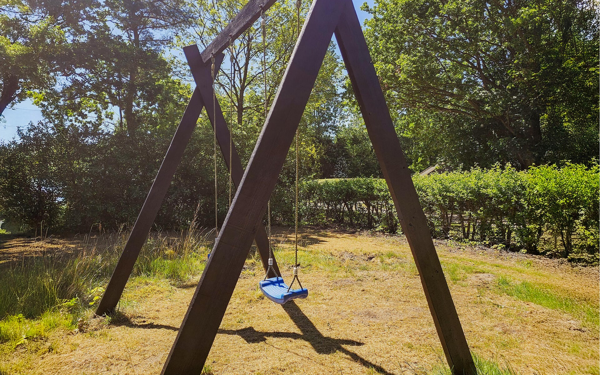 Enjoy a cup of tea or coffee outside in the morning and have breakfast on the sheltered terrace right next to the house. Spend relaxing hours on the natural grounds, play football with your children or let them swing on the swings. Gather the family around the barbecue in the evening and toast to your holiday experiences.