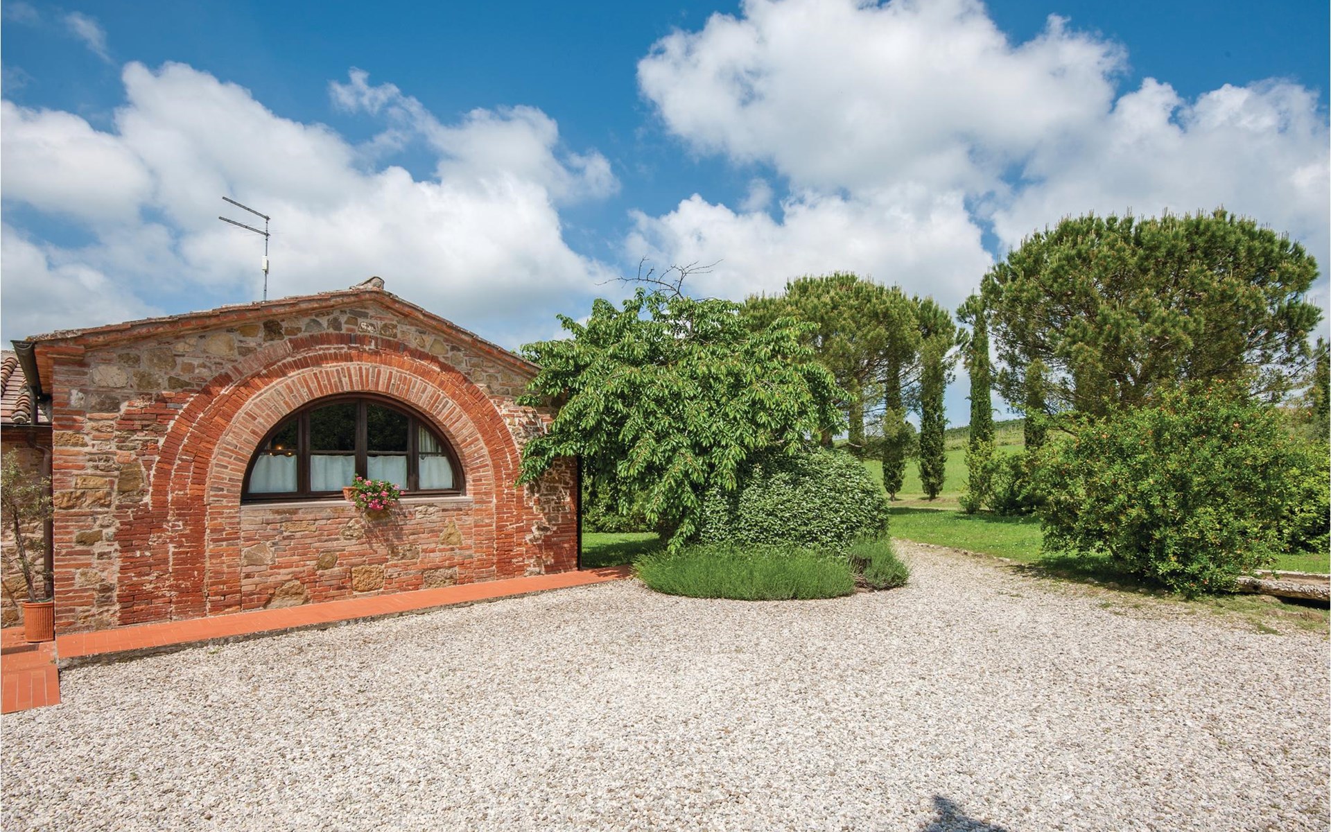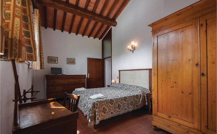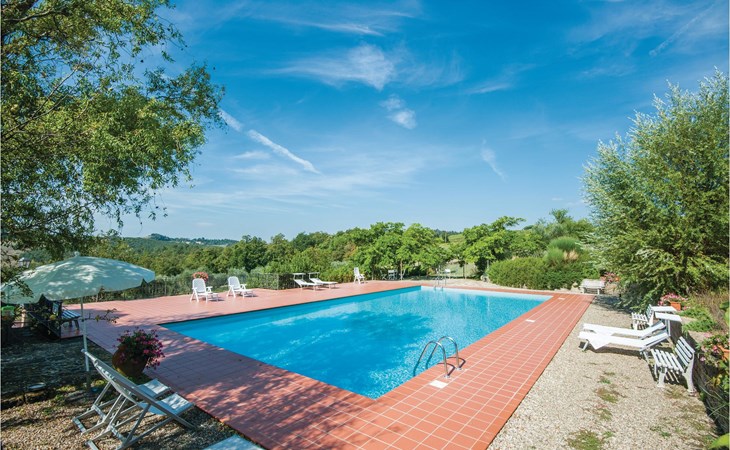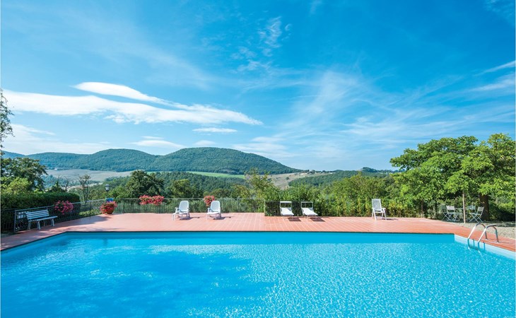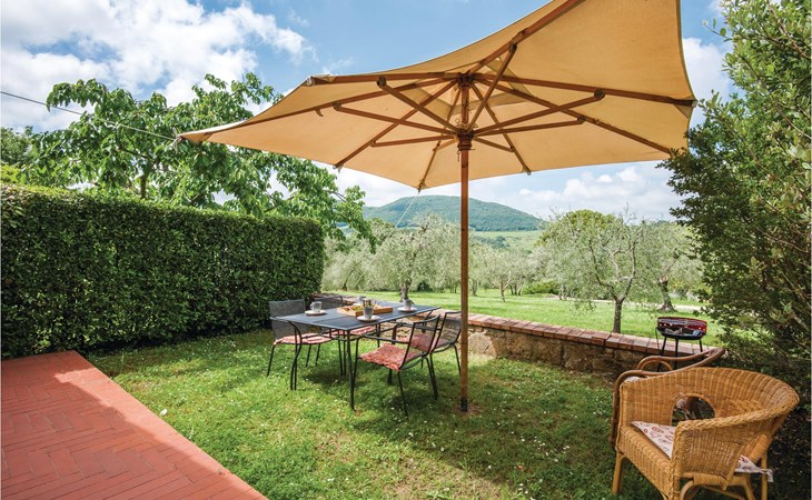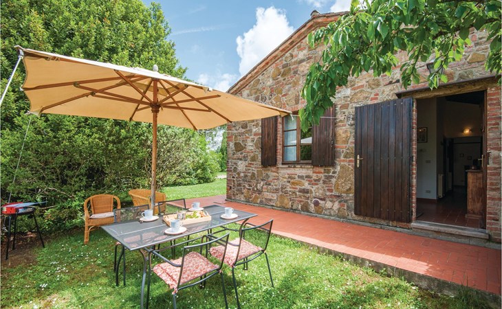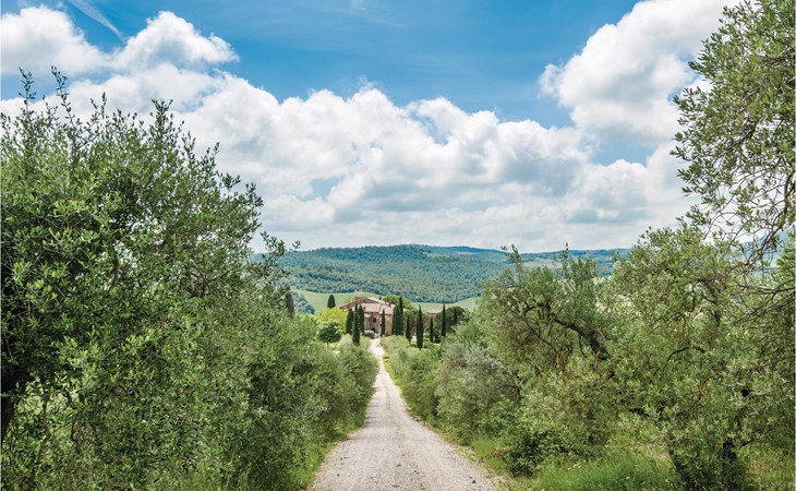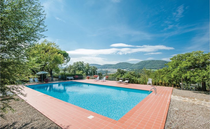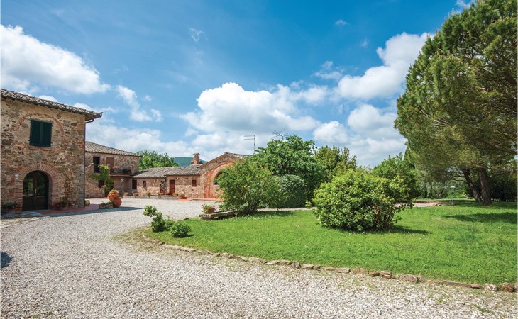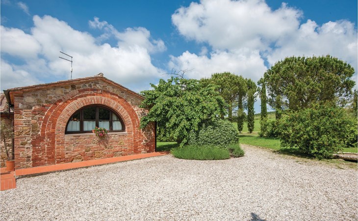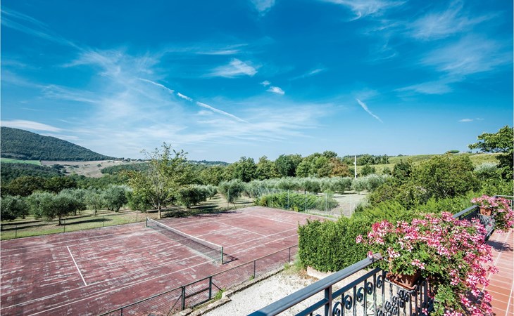 About 4 km from Trequanda lies this friendly vacation home in the vineyards. It belongs to an old estate, where today there are various summer residences of Italian families. The house is on the ground floor, with small private garden and sitting area in front of the kitchen-living room. The furnishings are simple and tasteful. The spacious outdoor area is very well maintained and very picturesquely surrounded by olive groves and vineyards. The large pool with its sun terraces and the tennis court are shared by all residents. The sunset, which you can watch from the terrace, will remain in your memory! Nearby destinations include Montepulciano and Pienza (25 km each), Arezzo and Siena (45-50 km) and Lake Trasimeno (35 km). But the nearby towns of Sinalunga (4 km) and Torrita di Siena (10 km) are also worth visiting. Unpaved access road.