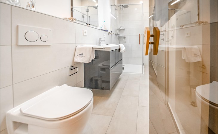 This premium house offers you an upscale living experience on two spacious floors. In addition to a friendly living and dining room with kitchen, you will also find two bedrooms as well as a shower room with sauna, a guest toilet with shower and a washer-dryer.