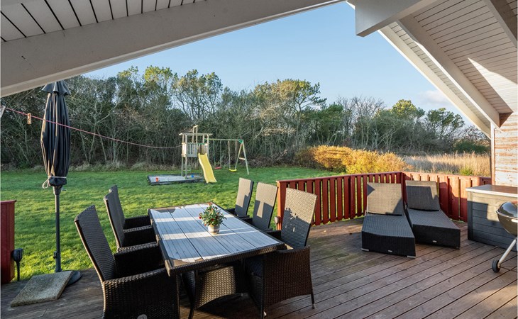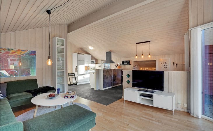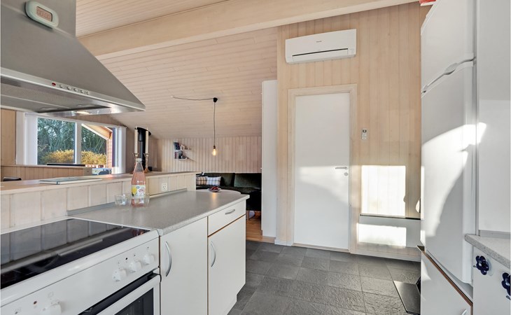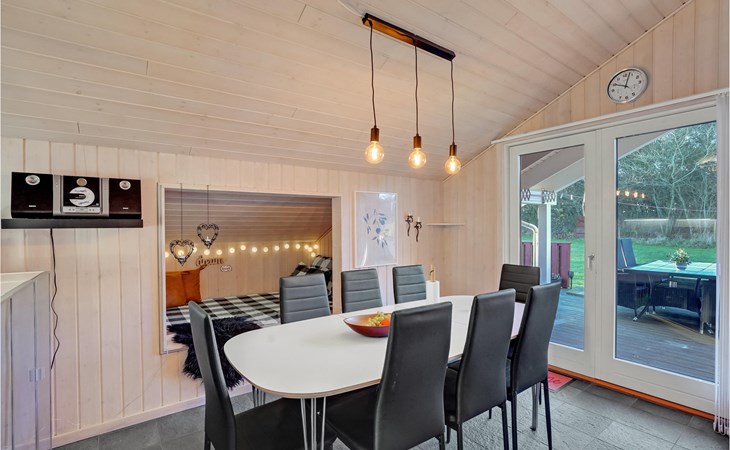 In the inviting house, everything has been done to ensure that you can spend a wonderful holiday here, and your pets are also welcome. The cosy and modern furnishings make it a comfortable place where you can relax and leave the hustle and bustle of everyday life behind you. Warm up after a long walk in the sauna and take a soothing bath in the whirlpool. Enjoy meals together and relaxing evenings in the living area, where you can settle down on the sofa, watch a film together or simply chat while the flames crackle in the wood-burning stove. The large windows offer a beautiful view of the garden.