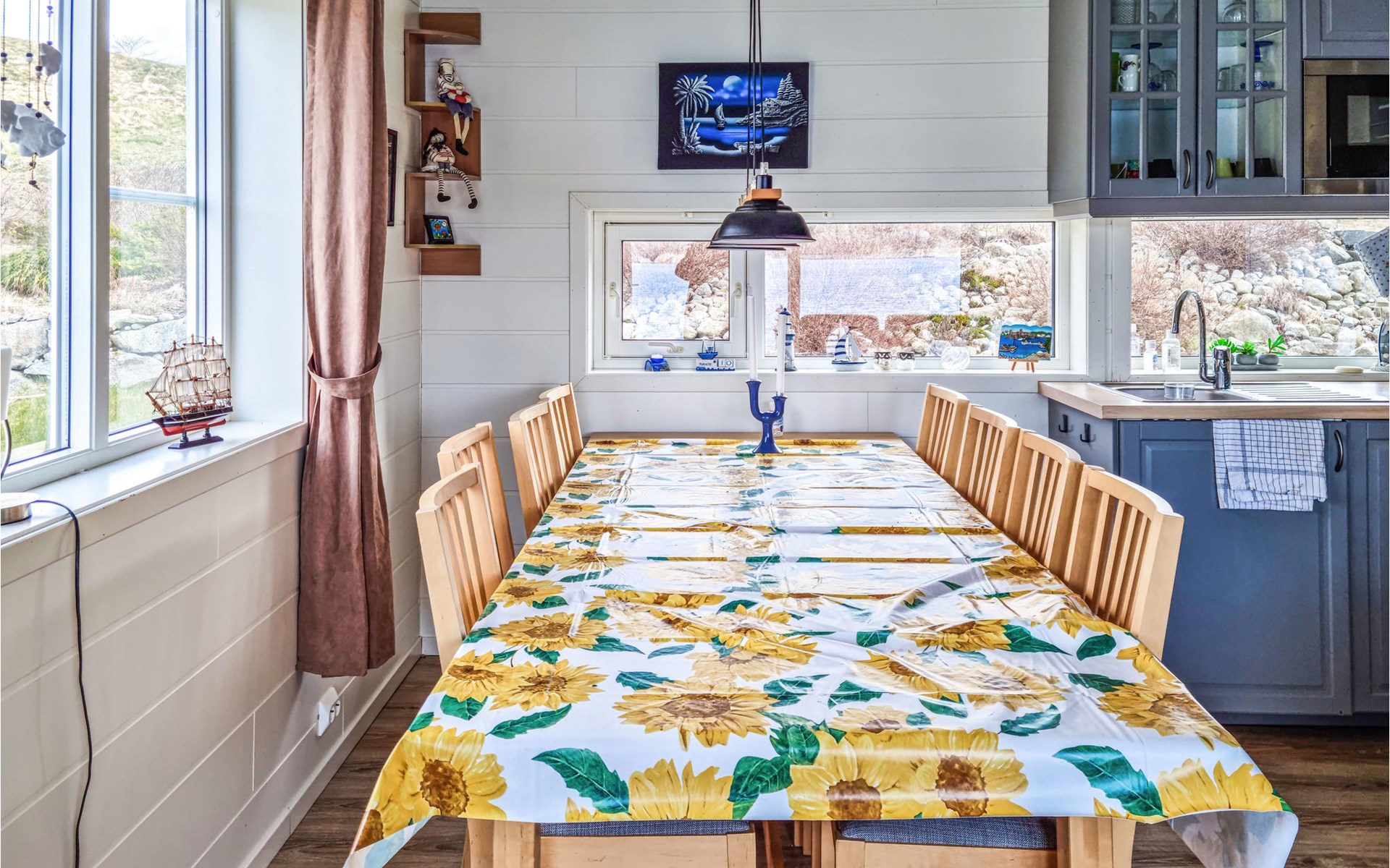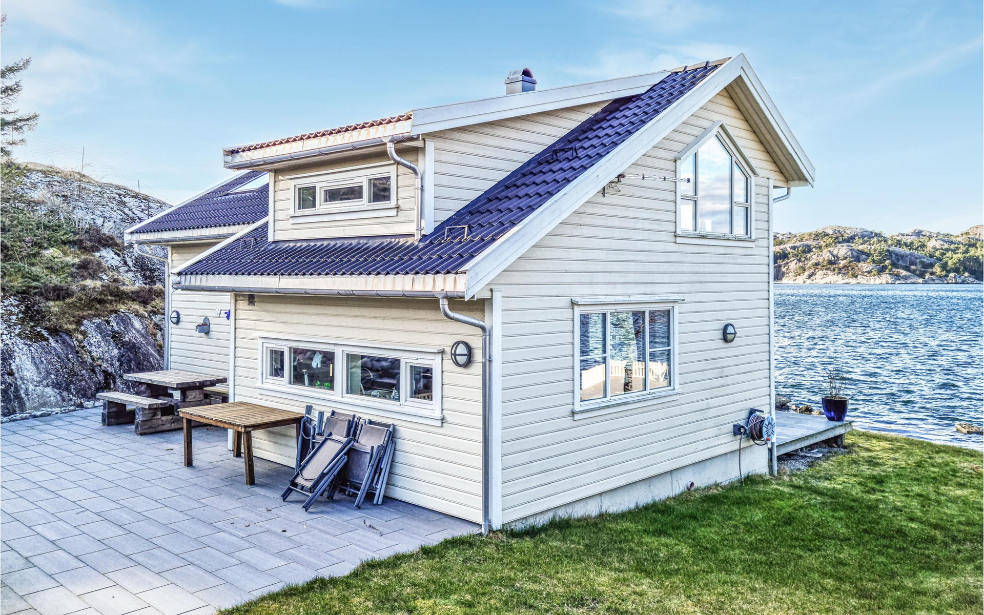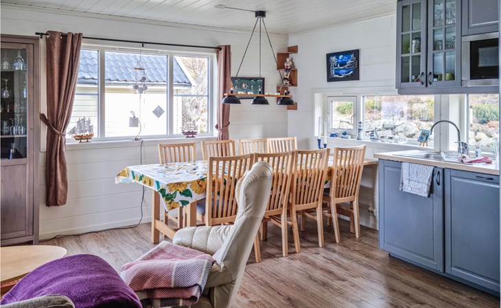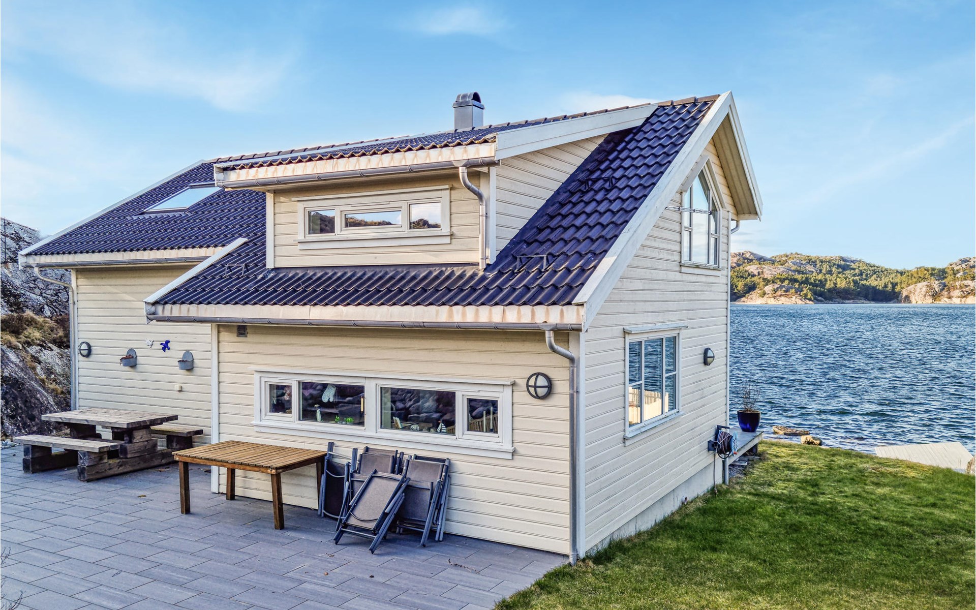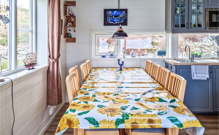 Look forward to an impressive panoramic view in this cozy vacation home right by the fjord!