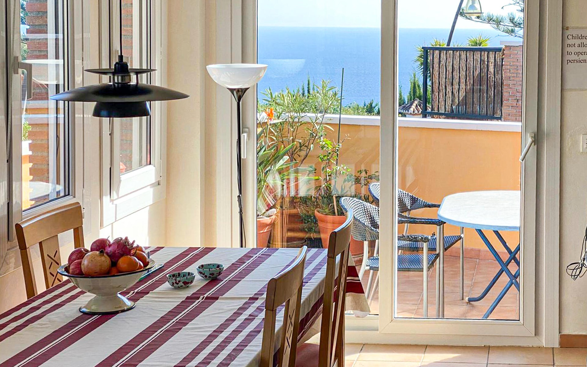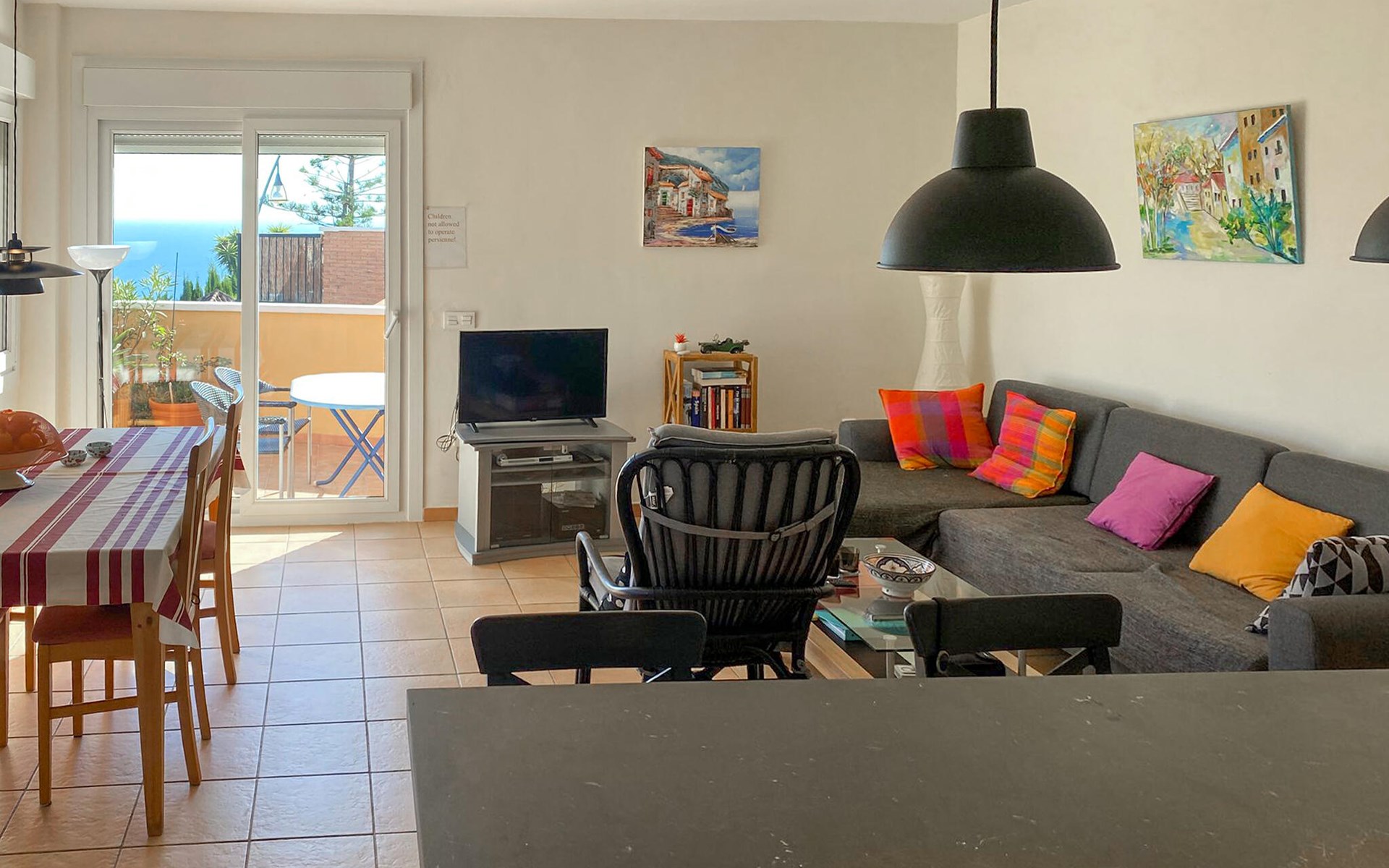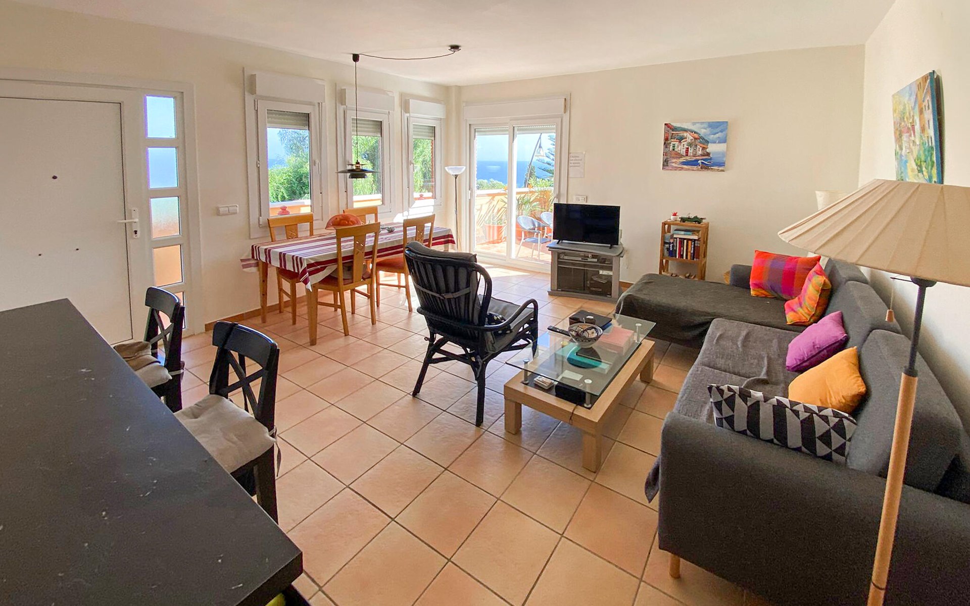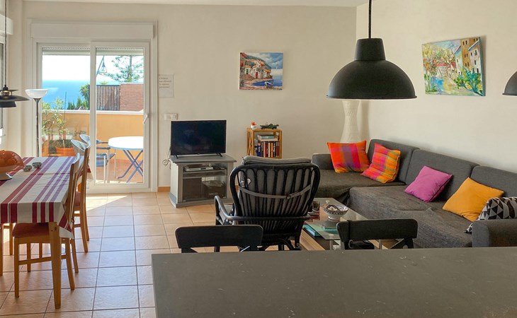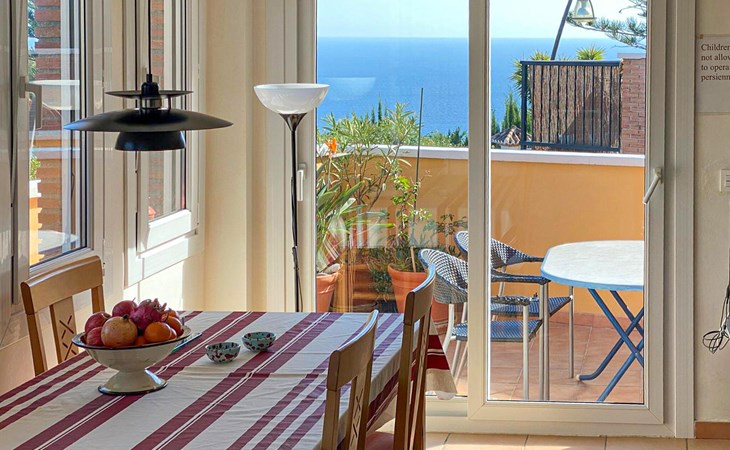 Spend a cosy break in this comfortable holiday home with sea views and access to the pool.