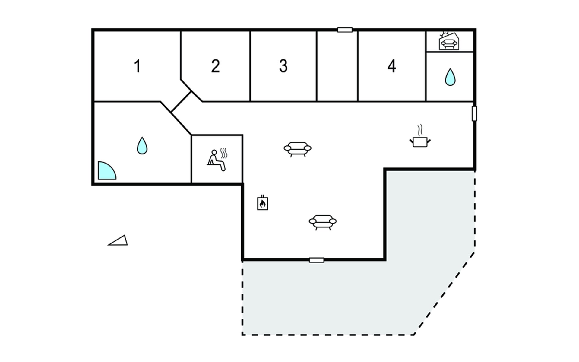 Step out onto the sheltered terrace with plenty of space to sit and dine al fresco. Enjoy the sun on the deckchairs or watch your children play on the swings right next to the house. Use the garden for cosy barbecue evenings or relaxing hours with a book.