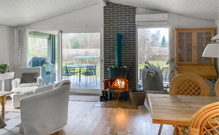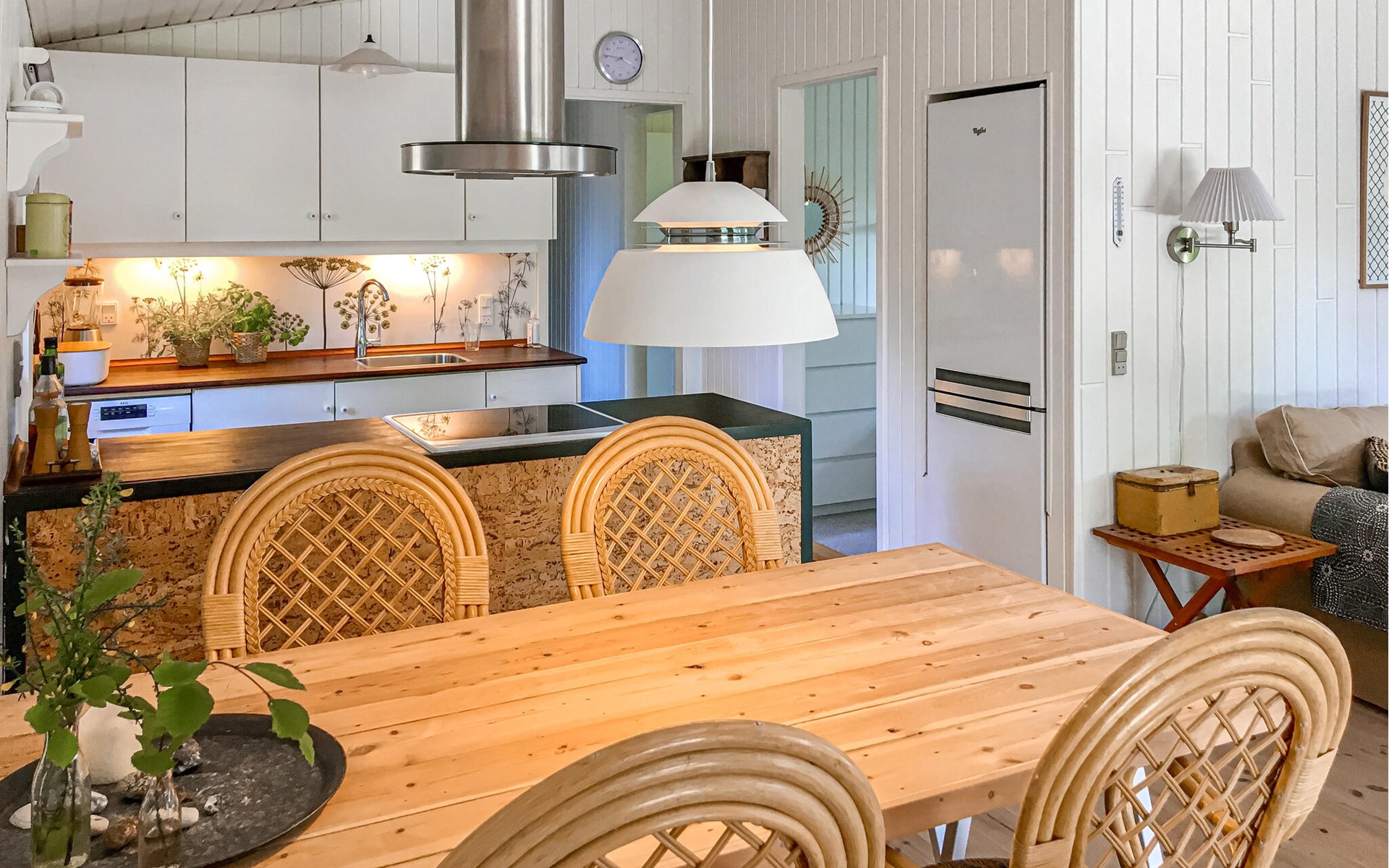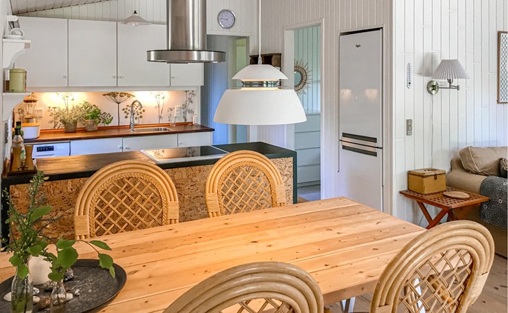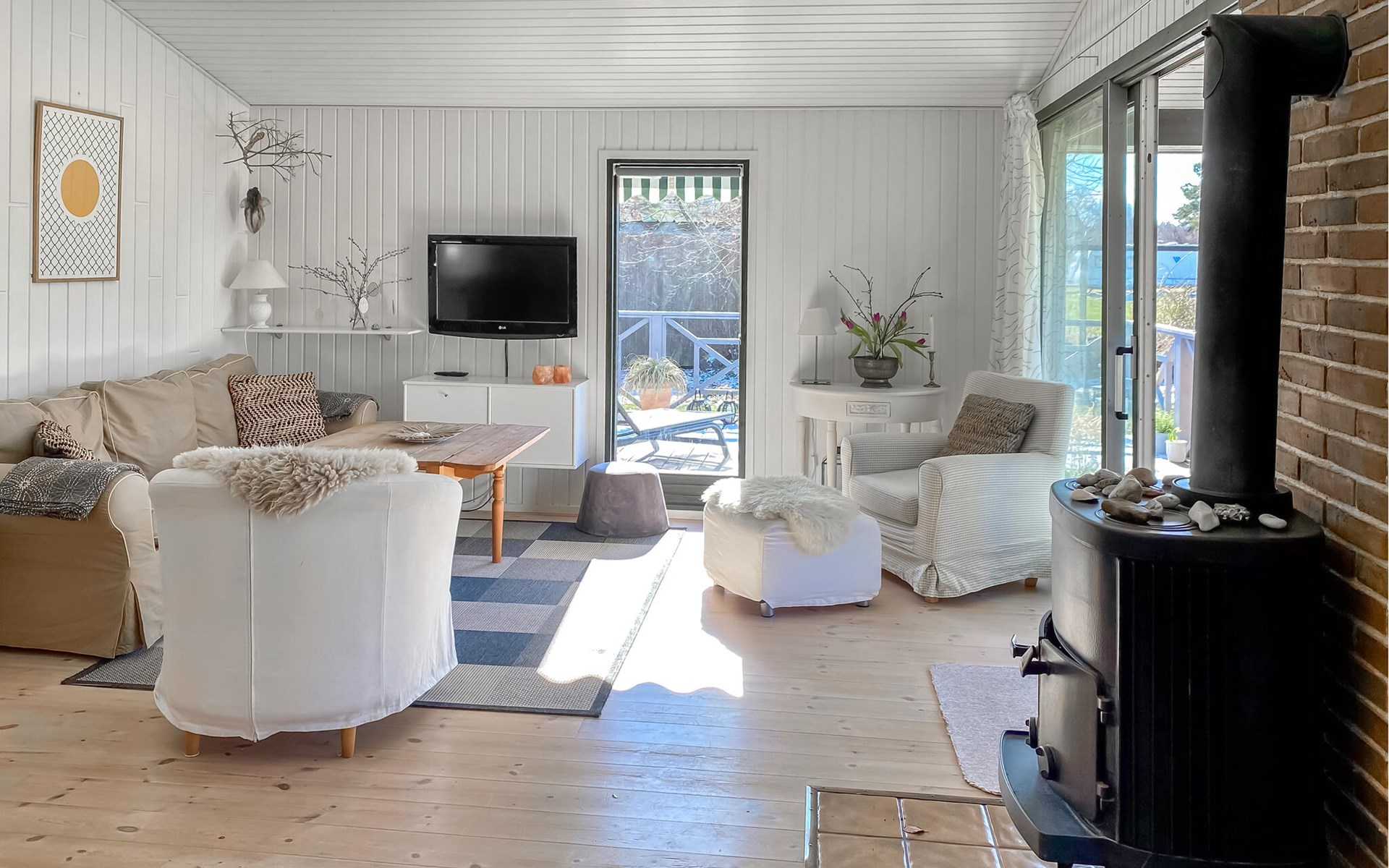 Step into this charming holiday home near the idyllic Nyrup Bay and enjoy a relaxing break away from everyday life. Here you will find the ideal place to unwind and enjoy your days off to the full. Prepare a hearty breakfast in the open-plan kitchen and then enjoy it in the adjoining dining area. The large windows provide plenty of natural light and a friendly, inviting atmosphere. End the evening by the wood-burning stove while the crackling fire provides cosy warmth.