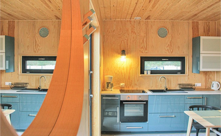 This modern wooden house is located in a quiet place, Nowe Warpno, in Pomorze Zachodnie. The house is very stylish and tastefully decorated. On the large terrace you can spend nice moments with your family. There are many bike paths nearby. In Nowe Warpno there is a beautiful beach with a small promenade. The place is the perfect vacation destination for windsurfers and other water sports lovers, even if you just want to take relaxing walks. A trip to Szczecin is recommended. The neighbors are PPO381.