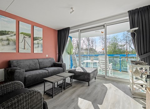 This studio is located on the peaceful land side of Beach Resort Punt West. You overlook grass, walking paths and dune vegetation. Here, all you hear are birds, the wind, and the gentle sounds of nearby nature. Thanks to its west-facing position, you can enjoy the evening sun on your terrace – the perfect setting for a glass of wine and a relaxed end to your day.