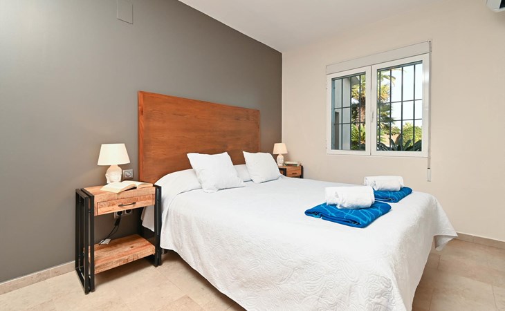 The house has 3 bedrooms and 3 bathrooms. The accommodation offers a lot of privacy, a beautiful lawned garden with gravel and trees and a beautiful pool. Its comfort and the vicinity of the beach, places to shop, sports activities, places to go out, sights and culture make this an ideal villa to spend your holidays in Spain with family or friends and even your pets.