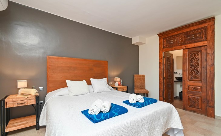 - air-conditioned bedroom with double bed and bathroom en-suite