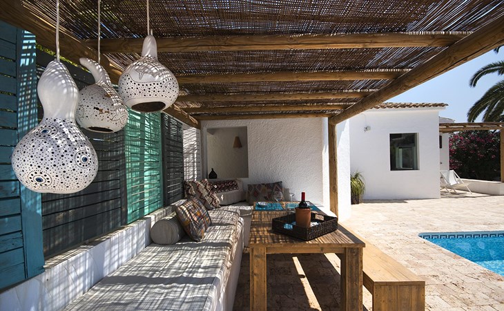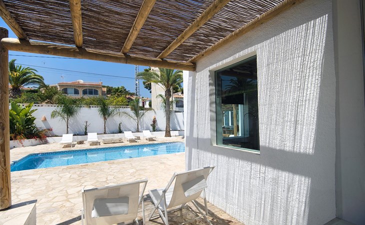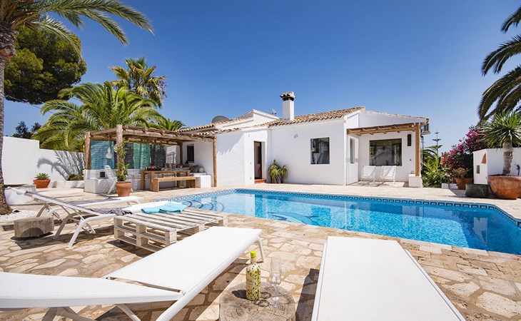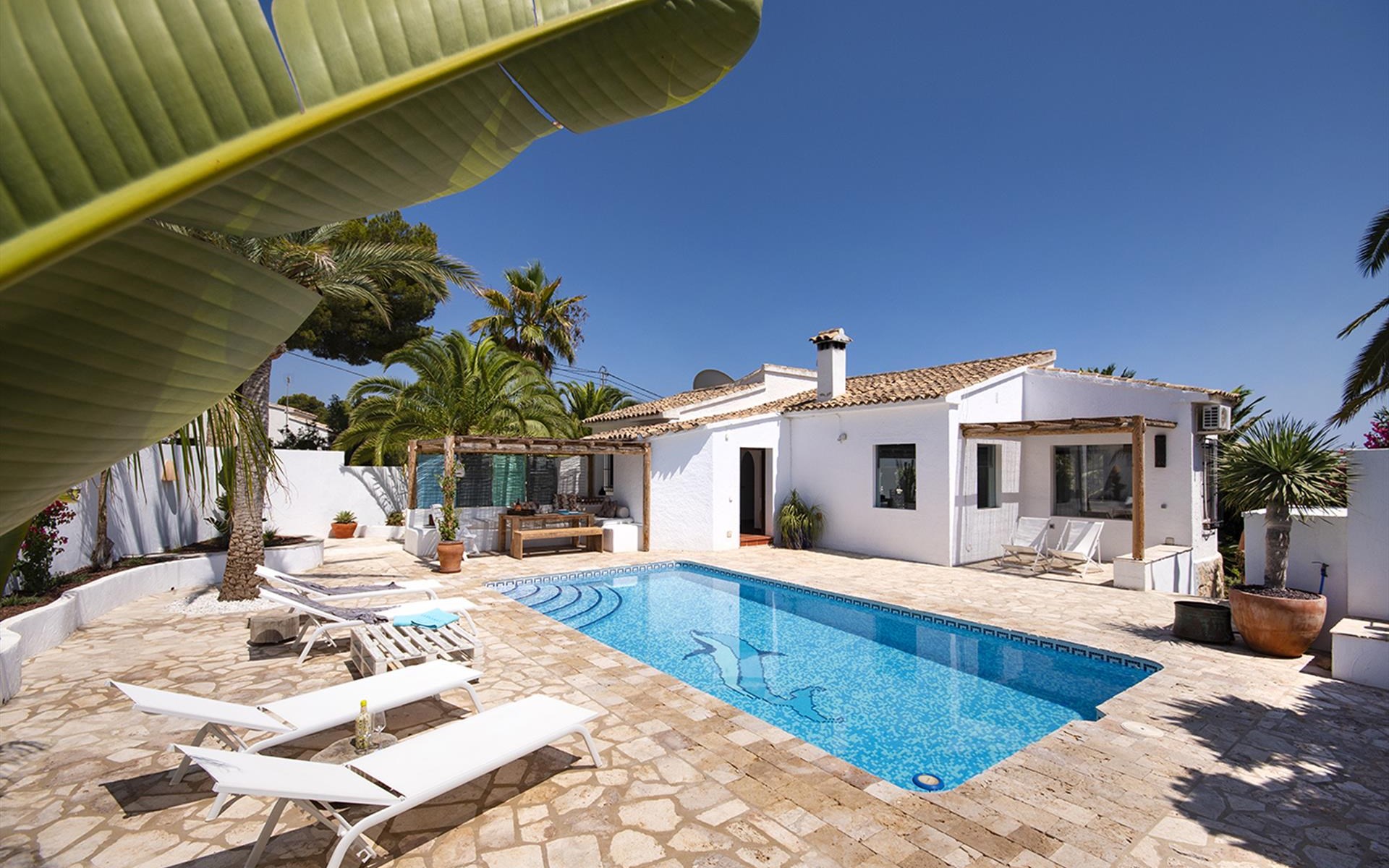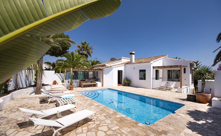 Wonderful and cheerful villa in Moraira, Costa Blanca, Spain with private pool for 6 persons. The house is situated in a residential beach area and at 3 km from Moraira beach.