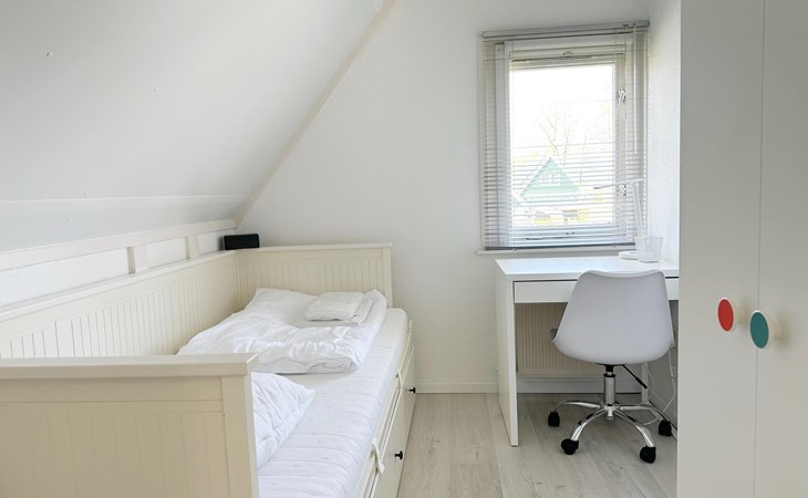 There are three bedrooms: the master bedroom has a double box-spring bed of 180 x 200 cm, and the two other bedrooms both have a single bed with a pull-out bed. The terrace on the southwest has a large awning, perfect for enjoying the outdoors. The bungalow has a bathroom with shower and two toilets, which makes your stay extra comfortable.