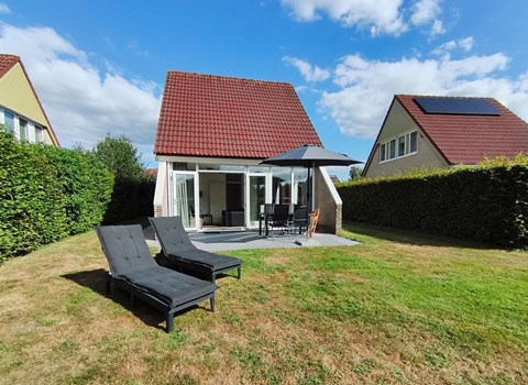 Wij zaten tegenover een speeltuintje én een zwembad, ideaal voor de kinderen. Het park is super schoon en de bloemperken worden keurig onderhouden. Ook het grasveld en de border rondom het huisje zien er mooi uit.