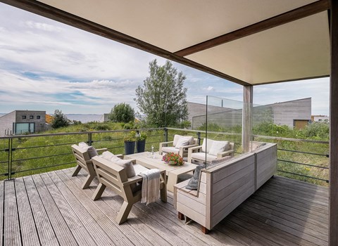 The Forest Villa does not use gas and has water-saving shower heads and LED lighting. Furthermore, the accommodation has a vegetation roof which benefits biodiversity. You can also opt for solar panels as an addition to the vegetation roof. You will not have to sacrifice any comfort thanks to the included air conditioning and floor heating. This allows you to enjoy a stay comfortably during any season.