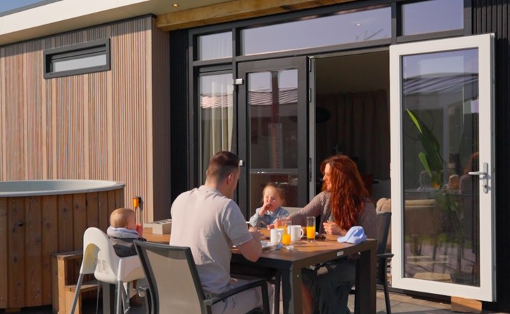 Experience carefree enjoyment in our 4-person recreation house, with luxurious Zeeland design, sustainable materials such as solid oak beams, and a natural look that harmonises perfectly with beach-like surroundings. Enjoy light and comfort all year round thanks to large windows, double glazing, plastic frames and excellent insulation. This fully electric home with complete kitchen, A-brand appliances and beautiful bathroom guarantees a carefree holiday experience.