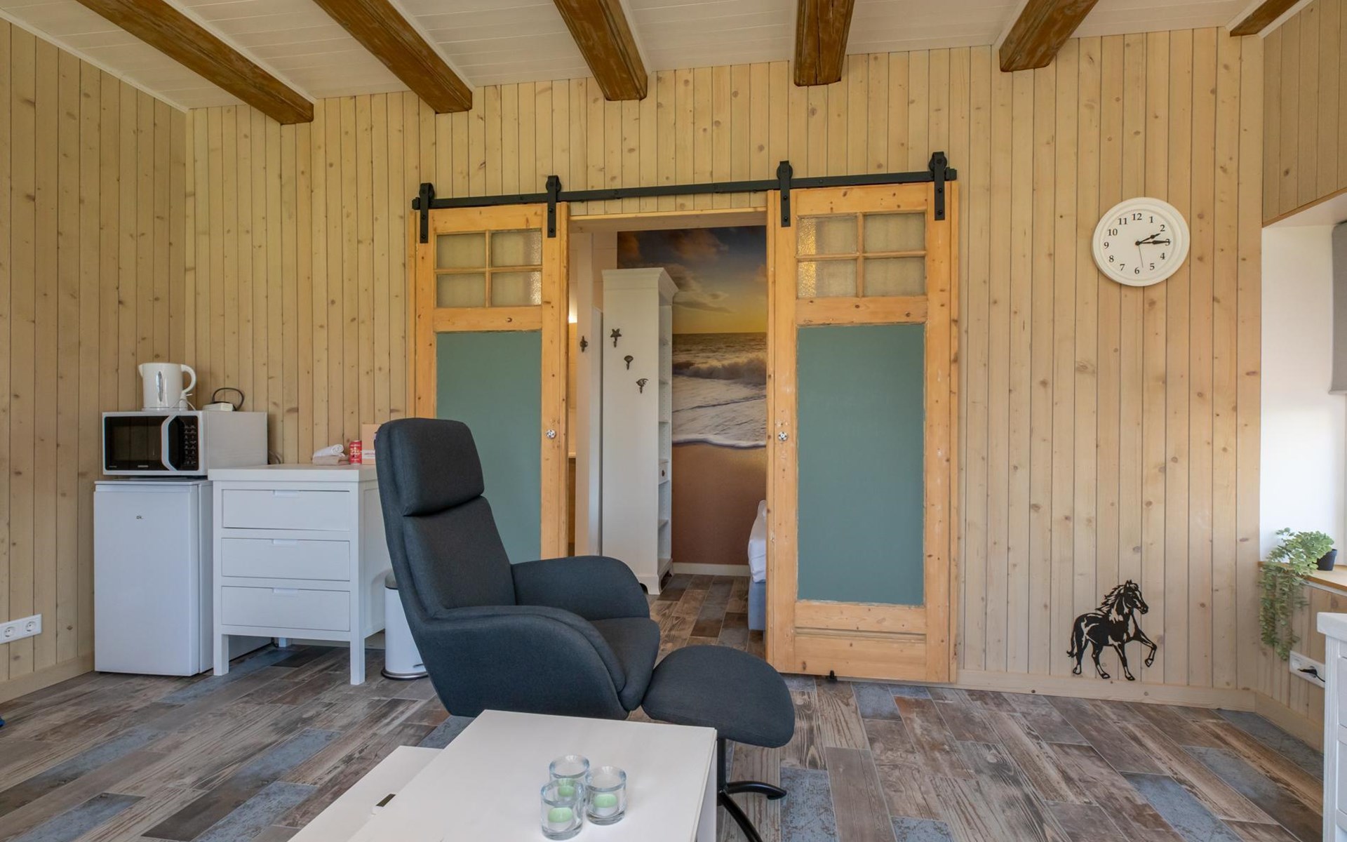 This charming, ground-floor holiday cottage is cozily furnished with lots of love. It combines rural charm with Zeeland influences, making you feel right at home immediately. The cottage may be compact, but it is designed to make your stay as pleasant as possible. The sitting area is equipped with two comfortable reclining armchairs by the television. Turn them a quarter turn, and you enjoy the view through classic windows outside. There is also a dining table for two, perfect for a romantic dinner or a cozy breakfast.