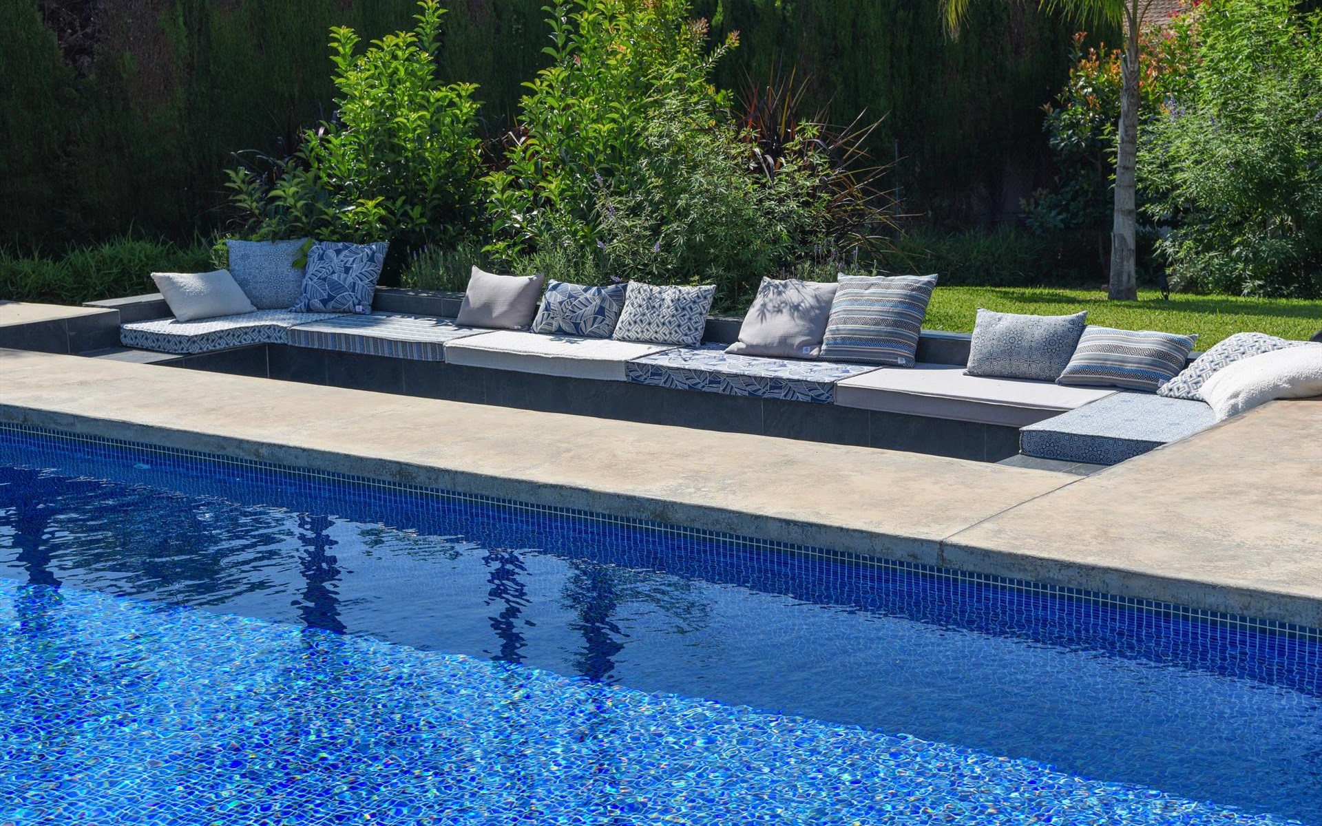 - wonderful lawned garden with gravel, trees and garden furniture with sunbeds